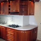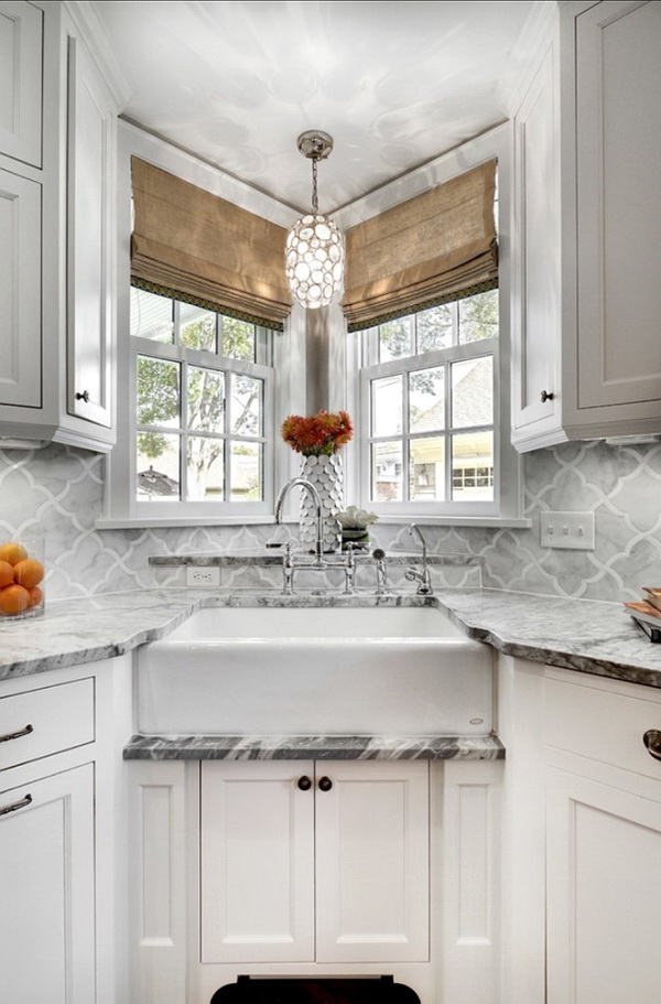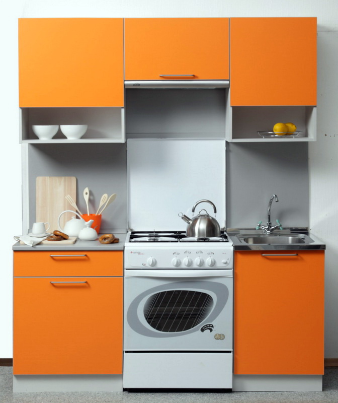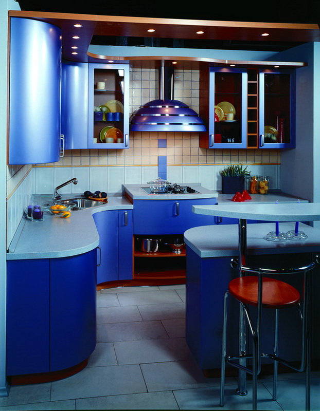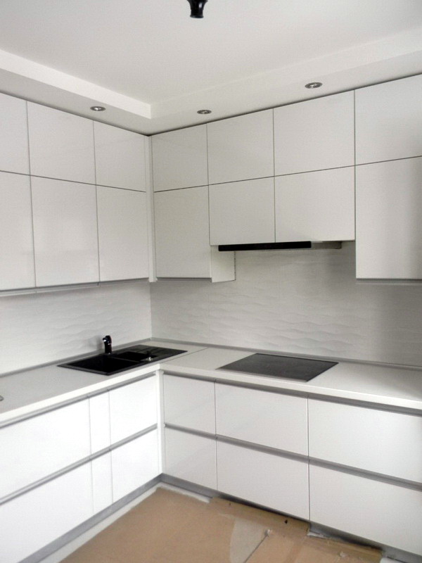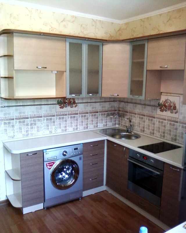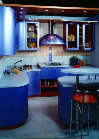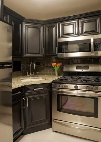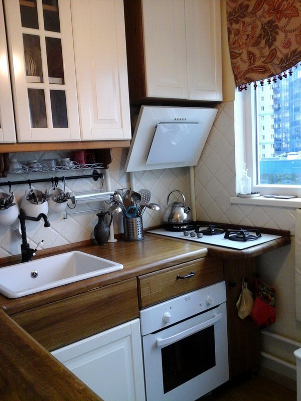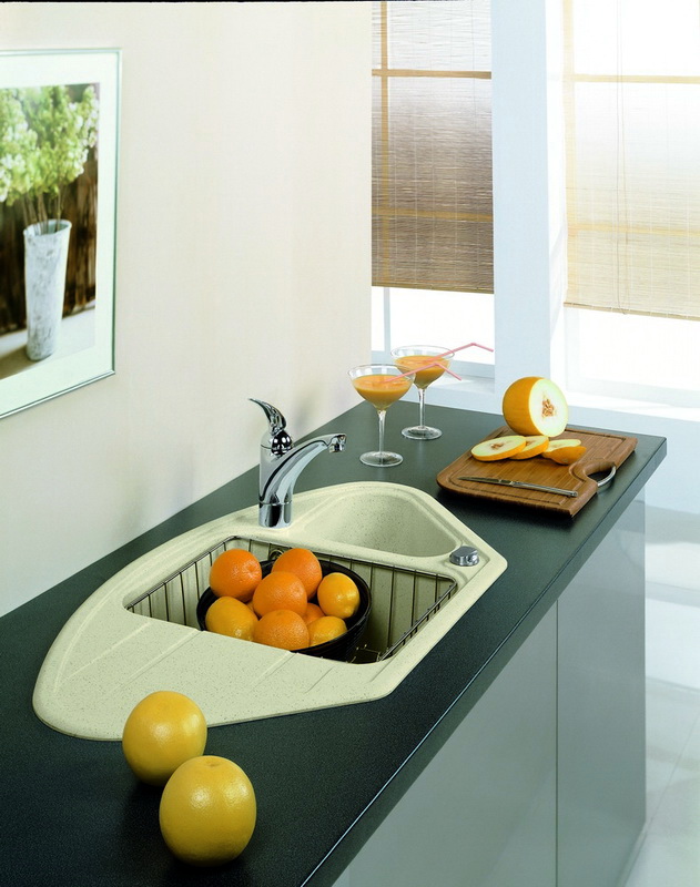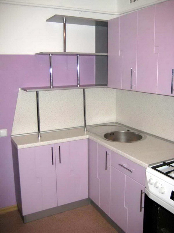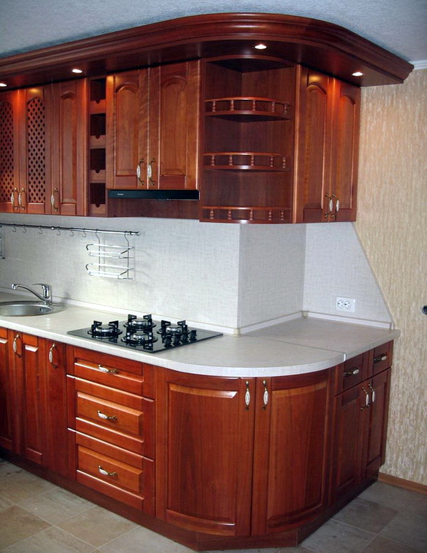 Eckschrank hat seine Vorteile. Der Raum in den Ecken wird überhaupt nicht benutzt, aber das eckige Design löst dieses Problem. Dieser Schrank ist besonders relevant, wenn Ihre Küche klein ist. Waschbecken in der Ecke ist immer leicht zugänglich, diese Anordnung optimiert den Kochvorgang.