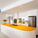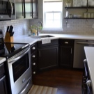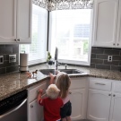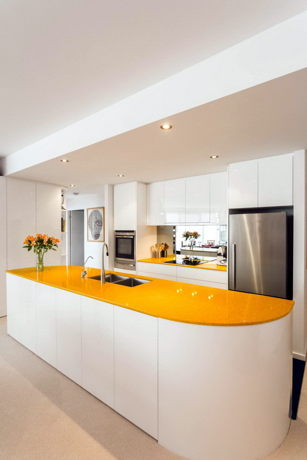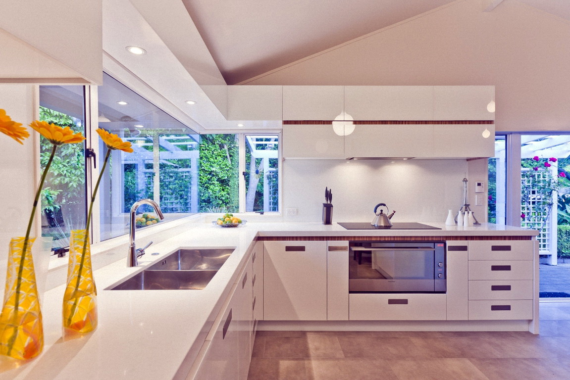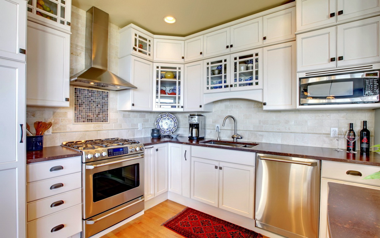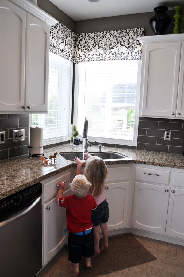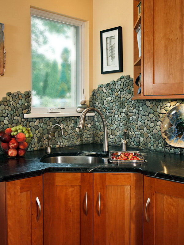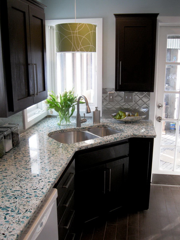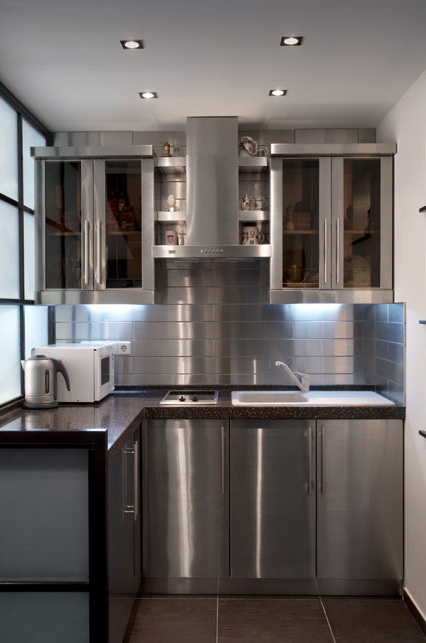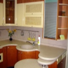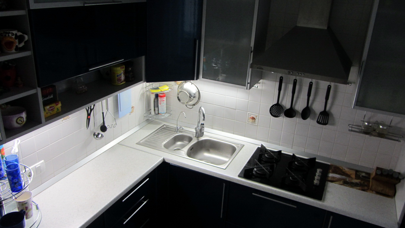 Eckschrank hat seine Vorteile. Der Raum in den Ecken wird überhaupt nicht benutzt, aber das eckige Design löst dieses Problem. Dieser Schrank ist besonders relevant, wenn Ihre Küche klein ist. Waschbecken in der Ecke ist immer leicht zugänglich, diese Anordnung optimiert den Kochvorgang.