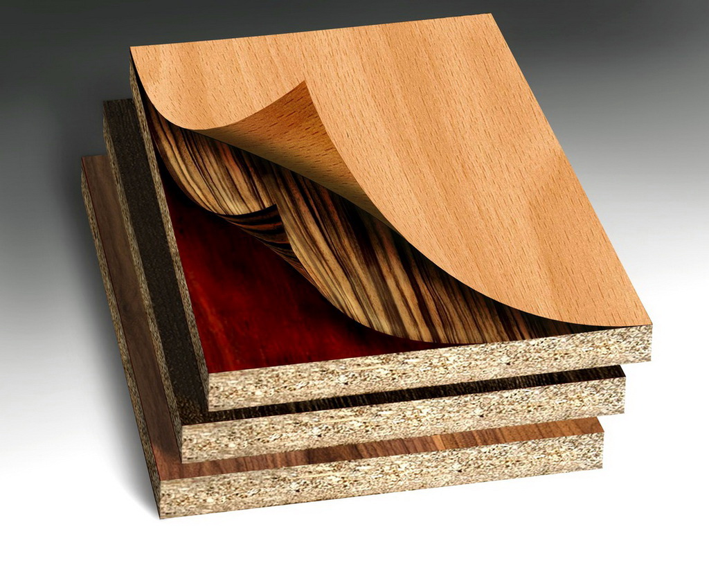 Dieses Material ist eine Fliese aus feinem Holz. Jede dieser Platten ist mit einem speziellen Bindemittel imprägniert, das die Fasern des Materials zusammenhält. Dieses Material erfordert ebenfalls einen zuverlässigen Schutz, ist jedoch weniger empfindlich gegenüber mechanischen Beschädigungen. Solche Möbel nehmen eine Nische des mittleren Preissegments ein.