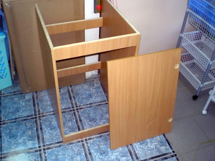 Stellen Sie einen Schrank zum Waschen der eigenen Hände her - eine bequeme Option. So können Sie alle Ihre Wünsche berücksichtigen und das perfekte Set machen. Es ist ziemlich schwierig, Fassaden zu machen, es ist besser, sie in fertige Form zu bringen. Gehen Sie folgendermaßen vor, um einen geraden Schrank für die Küche zu machen: