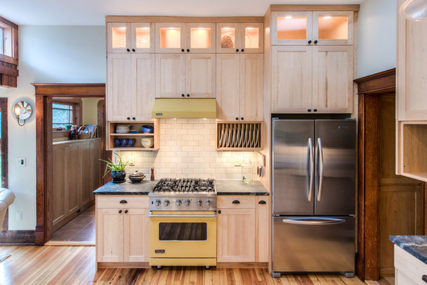 In der Küche der Provence oder des Klassischen Stils sind raffinierte Hochschränke aus Naturholz oder stilisiert dafür geeignet. Die Farbe dieser Schränke wird unter der gesamten Farbpalette des Raumes gewählt.