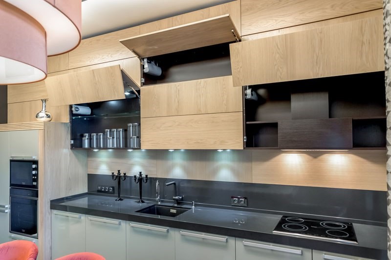 Das letzte Argument für hohe Schränke, die bis an die Decke reichen - solche Möbel sind jetzt im Trend. Indem Sie ein ähnliches Set installieren, das zum Stil Ihres Raumdesigns passt, werden Sie Ihre Küche modern und funktional gestalten.