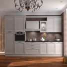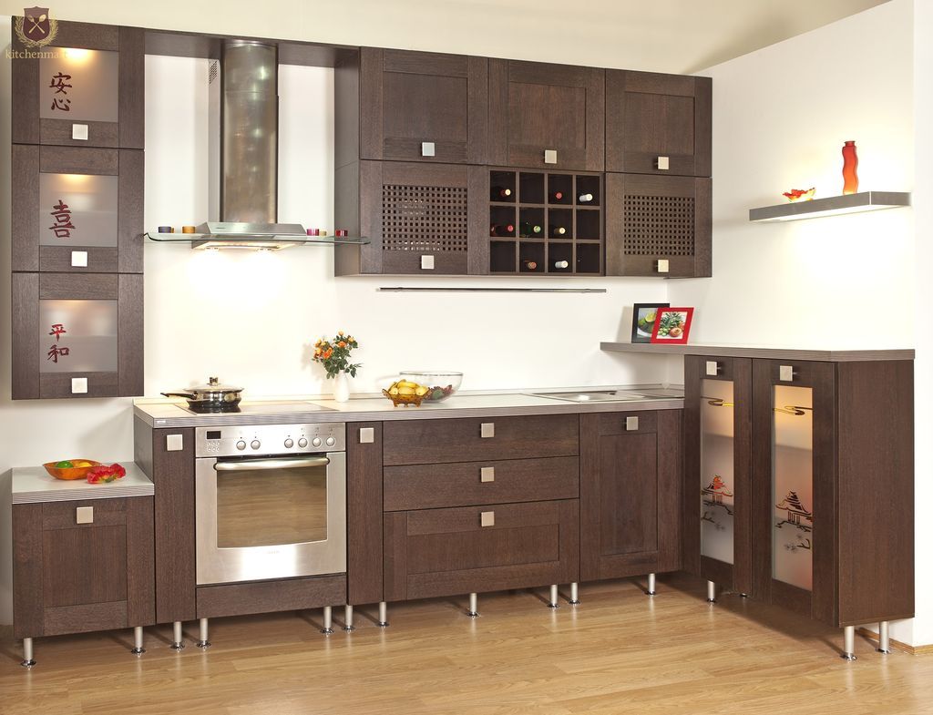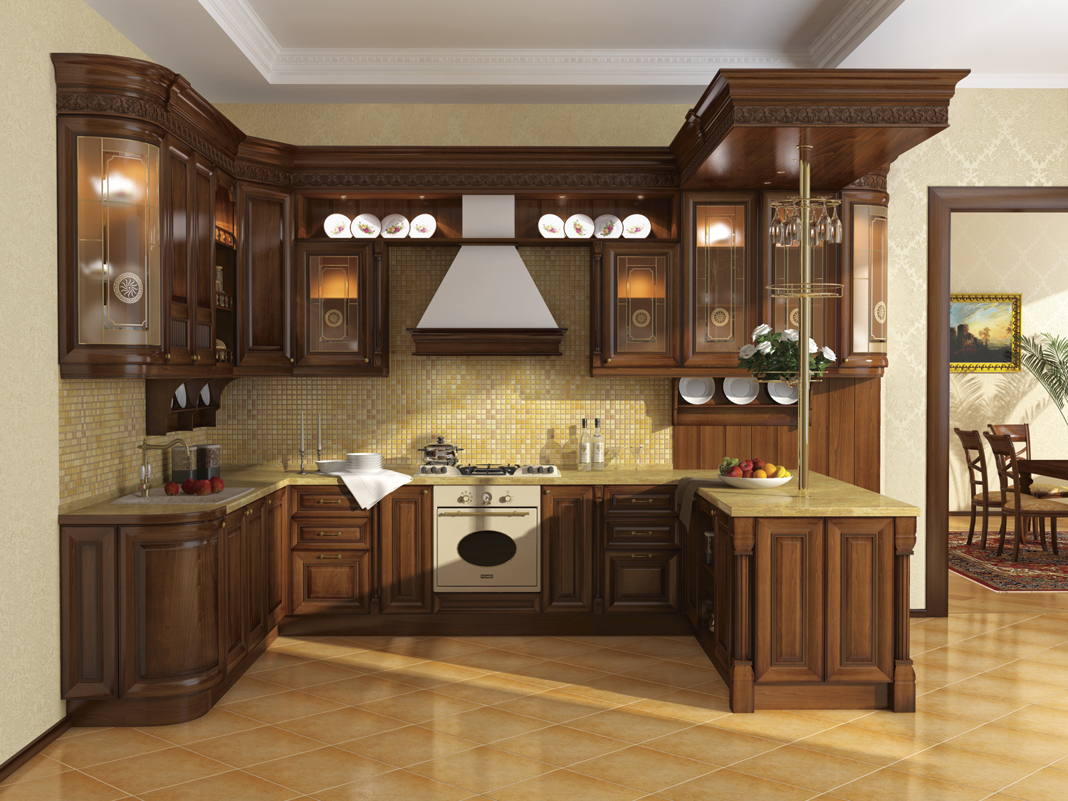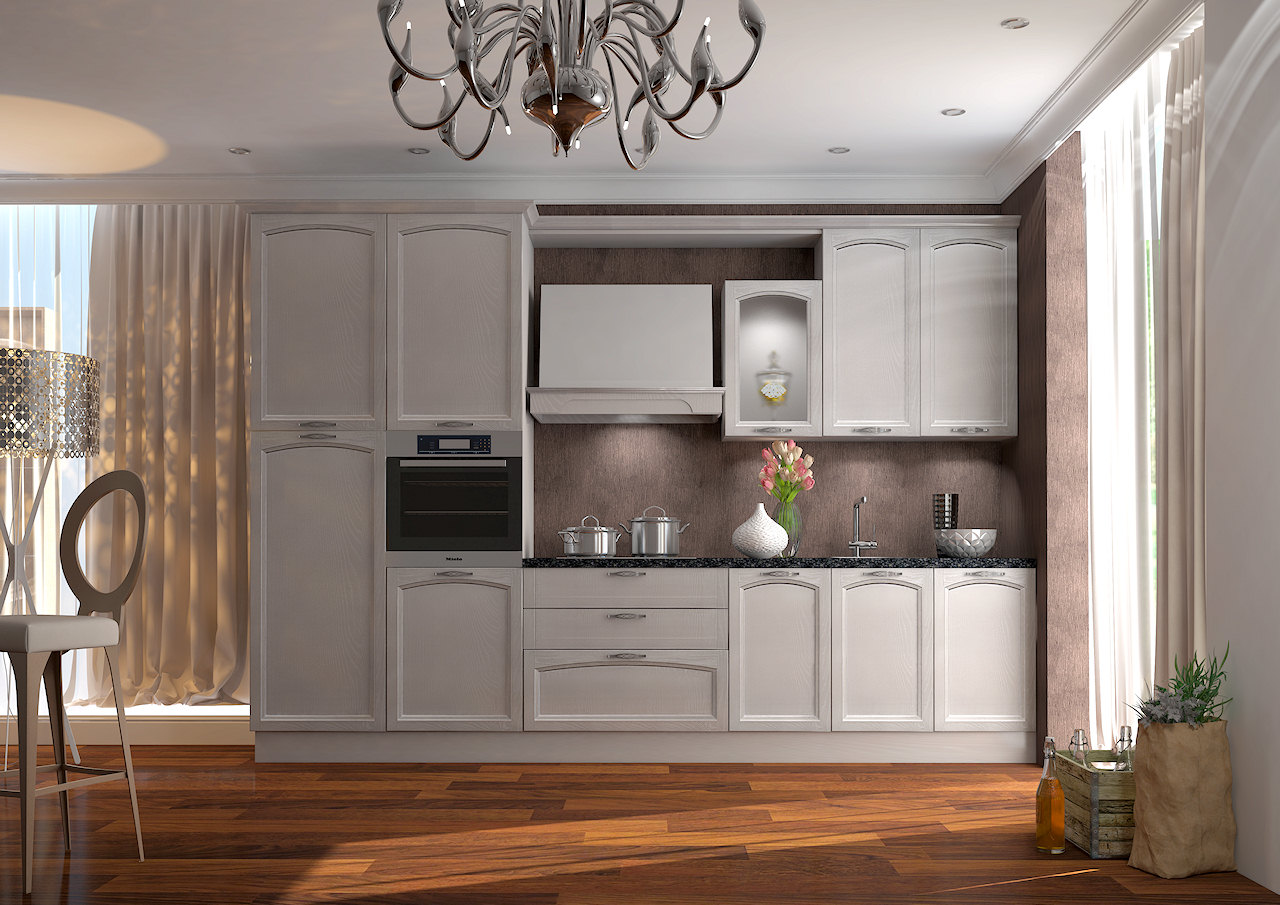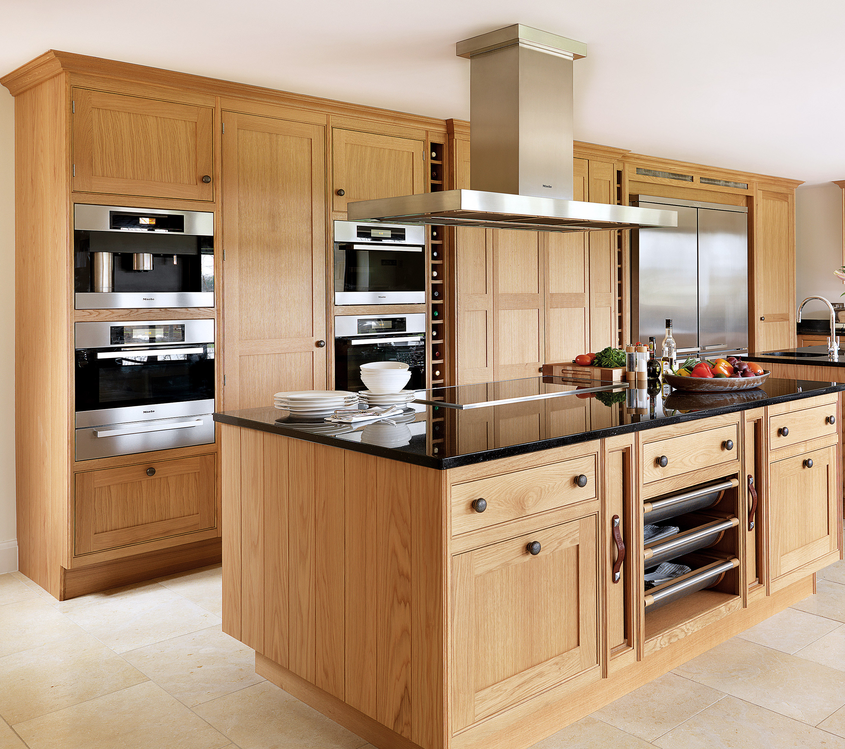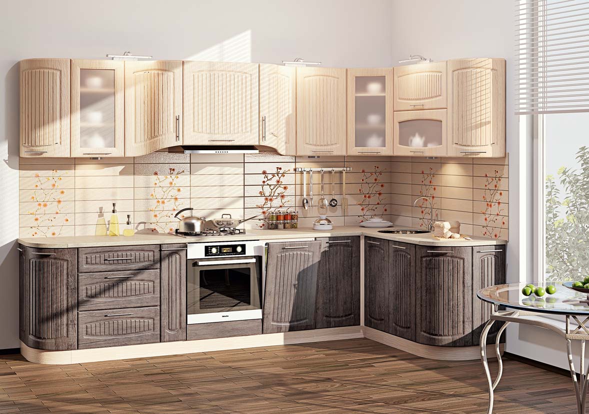 Die klassische Version - Türen und Arbeitsplatten aus Massivholz. In puncto Gesundheit ist es das sicherste Material für Möbel. Natürliches Holz, ohne Chemie, verursacht keine Allergien,Das ist sehr wichtig für Menschen mit gesundheitlichen Problemen. Die Elite-Sorten von Holz sind Eiche, Kirsche, Buche und einige andere Arten. Solche Möbel sind jedoch sehr teuer, auch wenn Sie nur Außenfassaden dieser Steine machen.