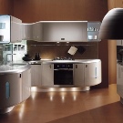 Aluminium bei der Herstellung von Küchenfronten wird hauptsächlich nicht in reiner Form, sondern in Kombination mit anderen Materialien verwendet. Stilvolle Aluminiumfassaden mit Glas- oder Spiegelfliesen und sogar Rattan bestehen aus Aluminiumprofilen. Dieses Design ist typisch für den Hightech-Stil. Aluminium neigt dazu, im Laufe der Zeit dunkler zu werden. Aus diesem Grund lehnen viele es ab und sind völlig vergeblich - dieser Nachteil kann leicht durch Reinigen des Profils mit Oxalsäure oder mit Essiglösung beseitigt werden.