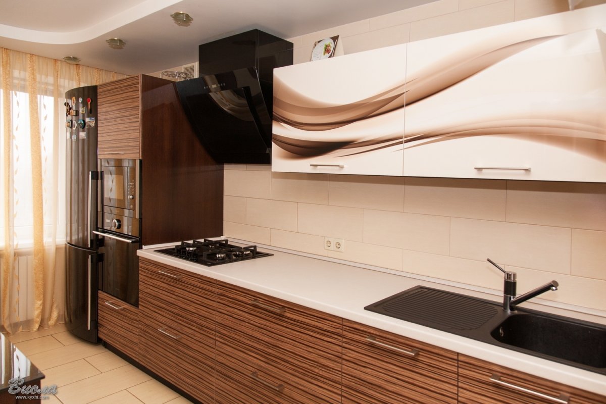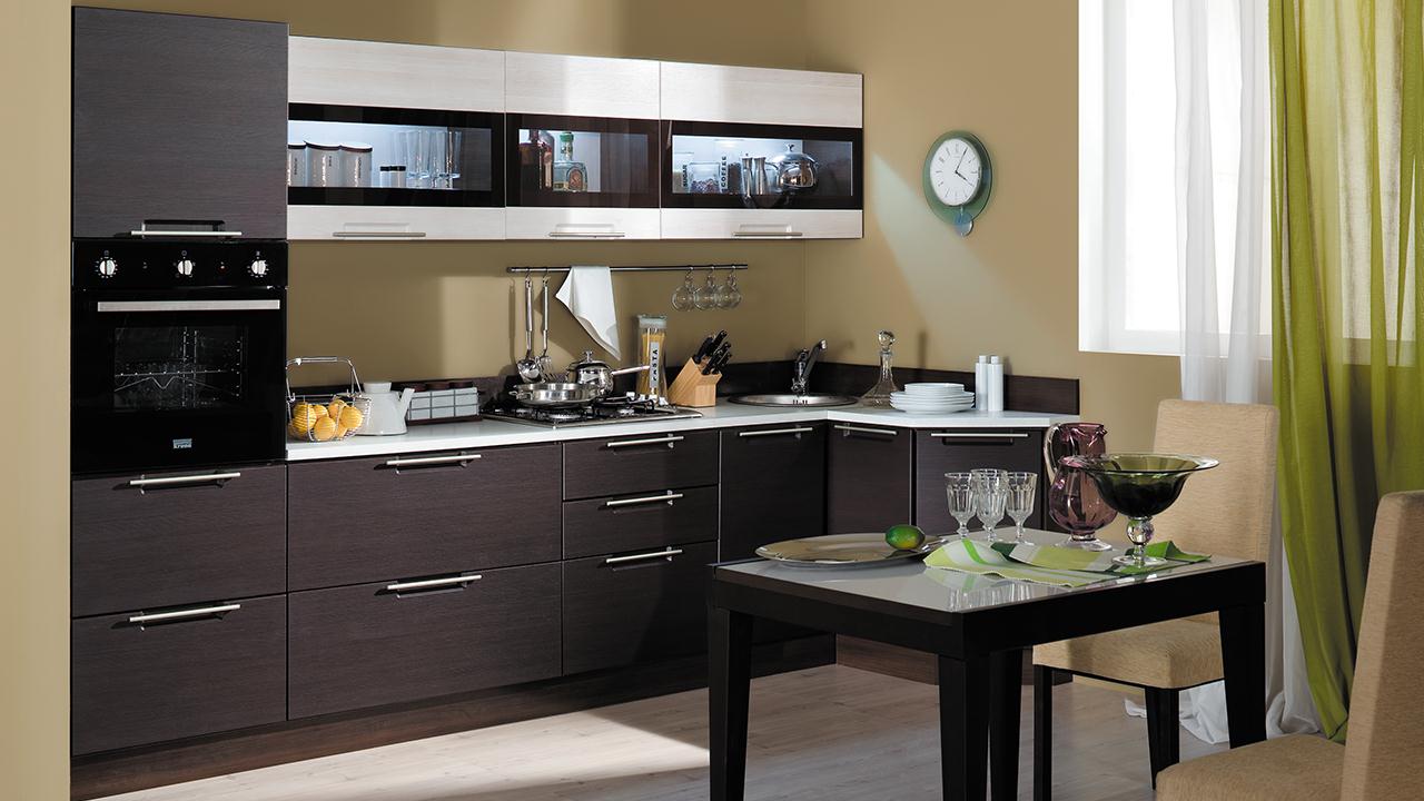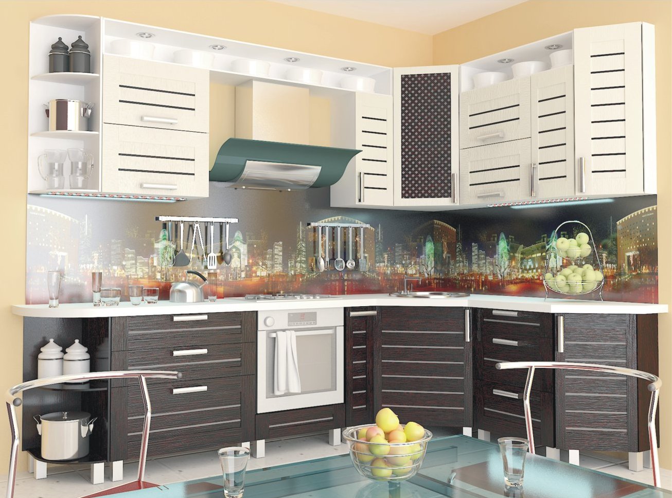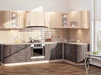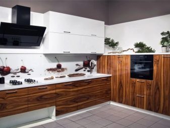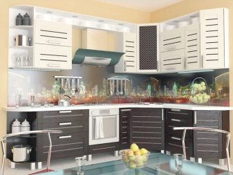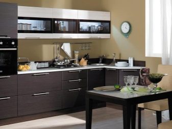 Wenn Sie eine nicht standardmäßige Küche haben, oder Sie nicht nach vorgefertigten Lösungen suchen und Ihre Küche einstellen möchten, aber nicht bereit sind, auf Sie zu warten, um die Küche zu bestellen, können Sie Küchenmodule verwenden und Ihre Version der Küche stellen. Verschiedene Möbelhäuser bieten oft modulare Schränke mit Glaseinsätzen in Kombination mit Holz, Metall und anderen Materialien. An solchen Stellen können Sie eine Box des Schranks einer Farbe wählen und die Fassade eines anderen wählen und die Griffe komplett aus einer Drittanbieter-Kollektion auswählen. So können Sie alle Küchenmöbel als Designer sammeln und Sie erhalten eine exklusive Option, anders als alle anderen.