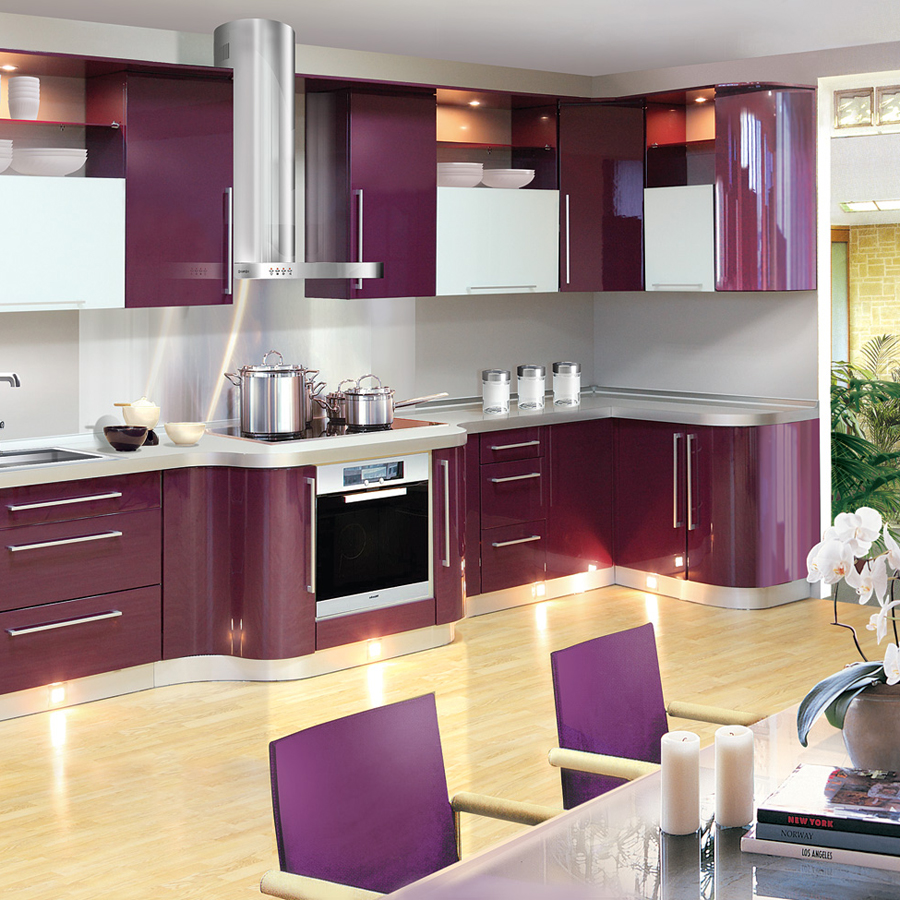 Kunststofffassaden aus MDF werden oft beidseitig geklebt, was ihre Praktikabilität erhöht. Dies ist eine sehr praktische und zugleich sehr wirtschaftliche Möglichkeit, die Küchenfassade fertigzustellen. Kunststoff widersteht leichten mechanischen Stößen und Kratzern, verbläßt nicht in der Sonne und hat keine Angst vor Haushaltschemikalien. Es ist sehr einfach zu waschen, und eine Vielzahl von Farben wird jeden Designer begeistern. Wenn Sie überdies müde von alten Schranktüren sind und das Küchendesign zu den geringsten Kosten ändern möchten, ist Kunststoff ein idealer Ersatz für lästige Fassaden.