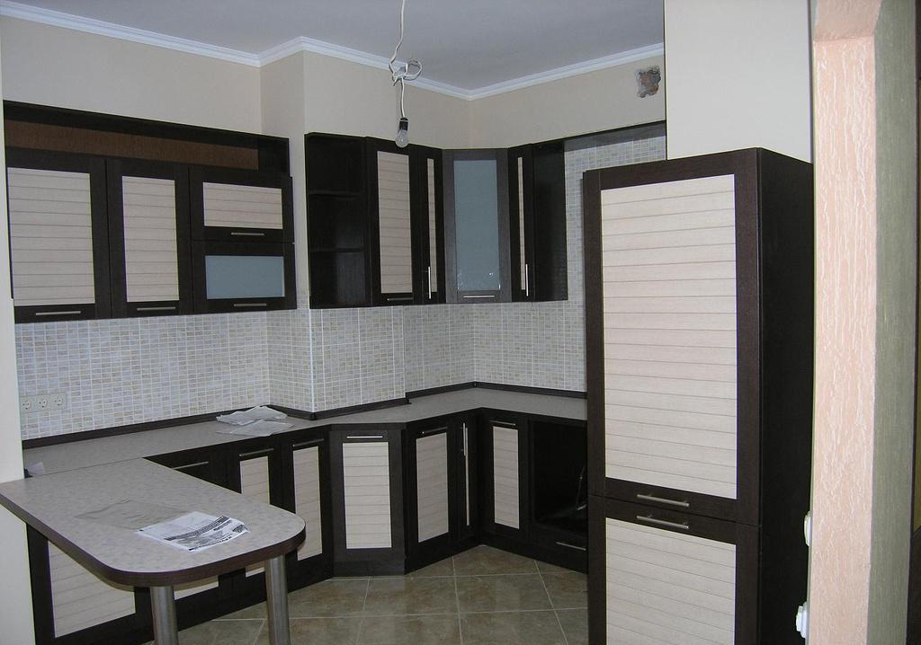 Mit der Folie können Sie schnell und vor allem kostengünstig das Design von MDF-Fassaden komplett verändern. Die Auswahl des Films ist riesig. Der Film kann Imitation unter einem Baum sein oder komplett monophon sein. Optionen für Design-Set.Die Folie ist beständig gegen Wasser und wiederholtem Abrieb, verbläßt aber schnell in der Sonne und schält sich an Orten ab, an denen sie Dampf und Wasser erhält. Careless Pastenfassaden verbilligen das Gesamtbild der Küche.
