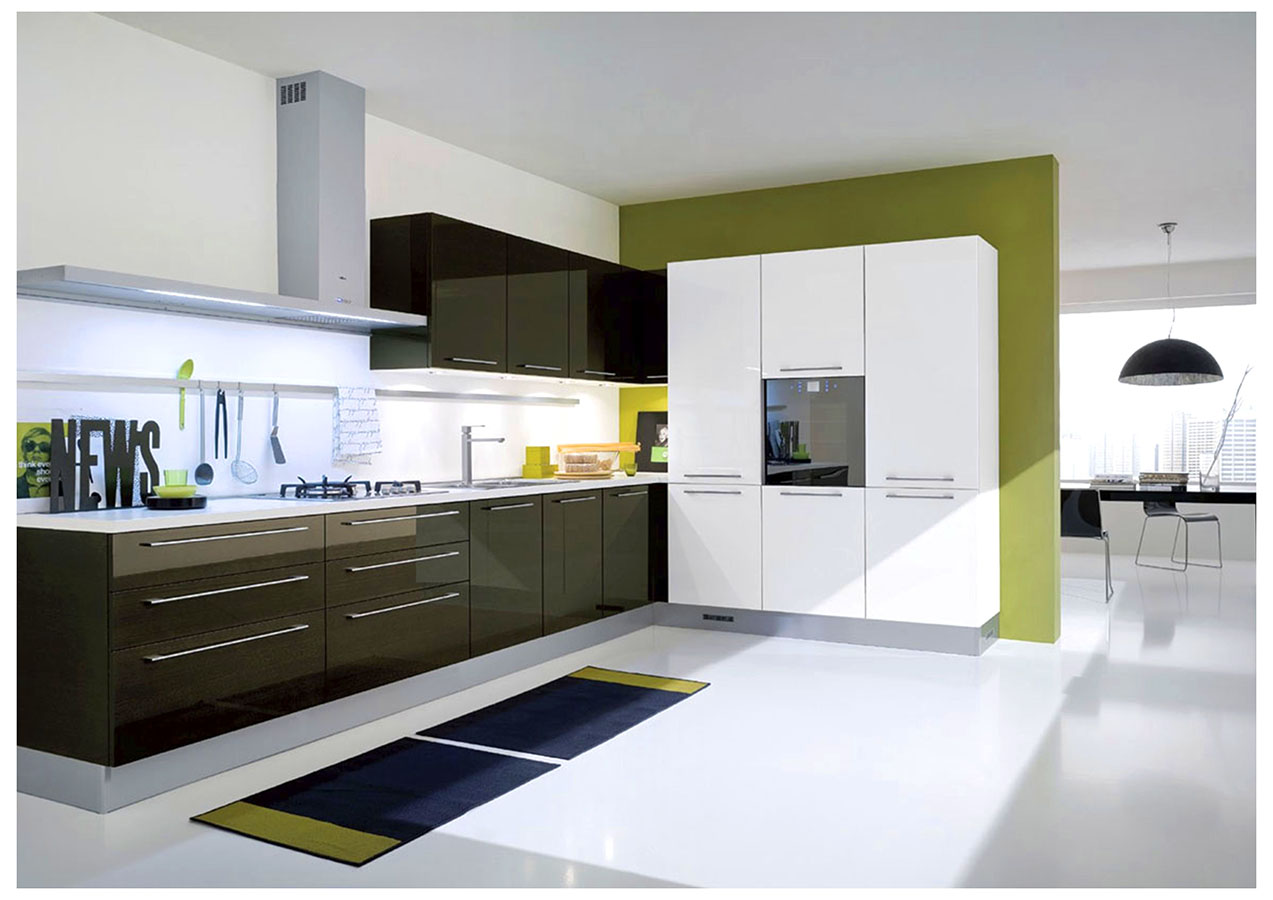 Die Lackierung der Fassade aus MDF erzeugte in mehreren Stufen Spezialemaille. Die letzte Schicht ist Lack aufgetragen, und dann ist die Oberfläche poliert. Dies ist eine dauerhaftere Art der Beschichtung im Vergleich zu Folie oder Kunststoff. Solche Fassaden sind jedoch teurer als die oben genannten. Darüber hinaus sind sie anfällig für Abplatzungen und mögen keine übermäßige Sonneneinstrahlung. Ihre Pflege wird dadurch erschwert, dass Fingerabdrücke auf der lackierten Oberfläche verbleiben. Dafür müssen ständig folgen. Eine weitere Nuance von gestrichenen Fassaden ist, dass es keine Möglichkeit gibt, eine beschädigte Fassade zu ersetzen: die Farbe ist für jeden Auftrag im Weg und der zusätzliche Teil wird sich in der Farbe unterscheiden.