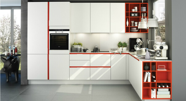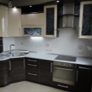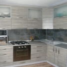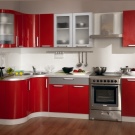 - Kunststoff Es gilt als das beste Material für die Herstellung von Küchenschränken in Bezug auf Kosten und Qualität. Dieses praktische und vollständig umweltfreundliche Material ist langlebig und zuverlässig. Gleichzeitig ist es unglaublich plastisch und einfach zu verarbeiten, was die Gestaltungsmöglichkeiten bei der Ausführung von Fassaden erheblich erweitern kann.