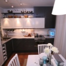 - Horizontal-Wandschrank an der Küchenwand fügt Dynamik dem Innenraum Dynamik hinzu und erweitert den Raum optisch. Zusätzliche Nischen, die oben oder unten an der Falt- oder Eintürfassade angeordnet sind, erhöhen die Funktionalität und Benutzerfreundlichkeit dieser unbanal Wandschublade erheblich.
