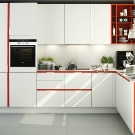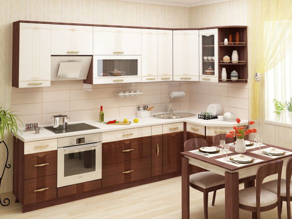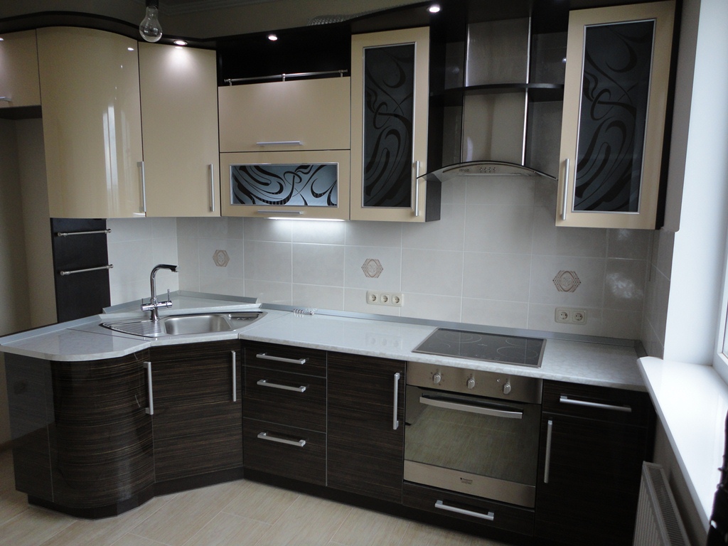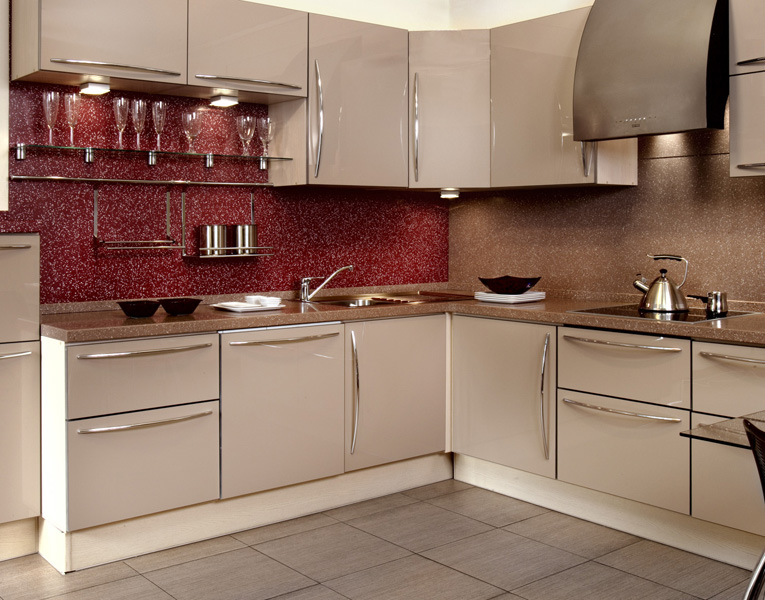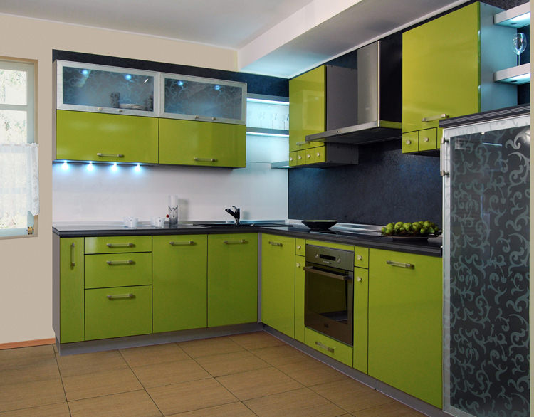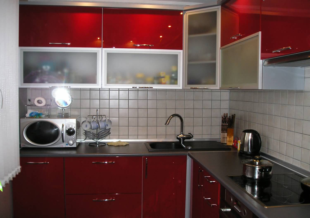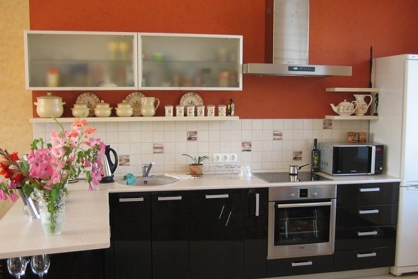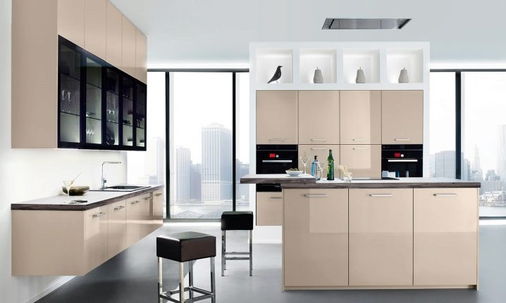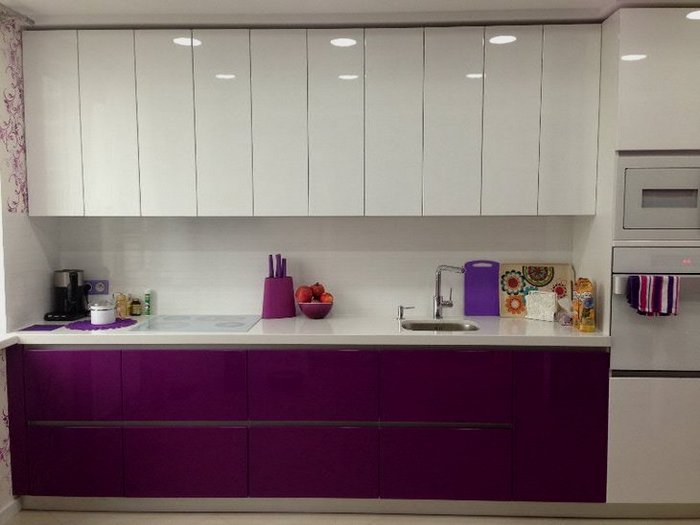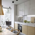Achten Sie auf die Qualität der Materialien der ausgewählten Wandschränke, so dass diese nicht von den übermäßigen Feuchtigkeits- und Temperaturschwankungen aller Küchenräume betroffen sind. Glänzende Oberflächen von Fassaden weisen eine höhere Feuchtigkeitsbeständigkeit auf.
