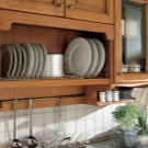 Und natürlich ist es in den Regalen eines solchen Hängeschrankes wünschenswert, ständig eine schöne Anordnung der Gerichte zu beobachten und eine perfekte Ordnung aufrechtzuerhalten.