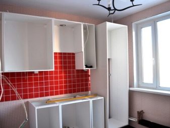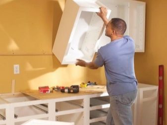 Es ist auch daran zu erinnern, dass es besser ist, die Wand zu maximieren, an der sie befestigt werden, um Probleme mit dem Andocken der Module an die unteren Hängeschränke zu vermeiden. Und in keinem Fall kann man sie nicht auf den Trennwänden der Trockenbauwände montieren, die leicht unter dem unerträglichen Gewicht des daran angebrachten Gutes des Meisters zusammenbrechen können.