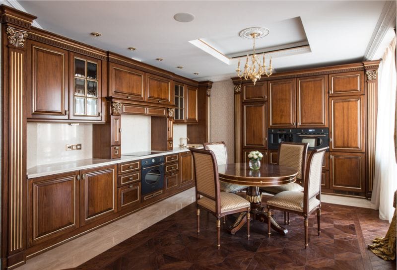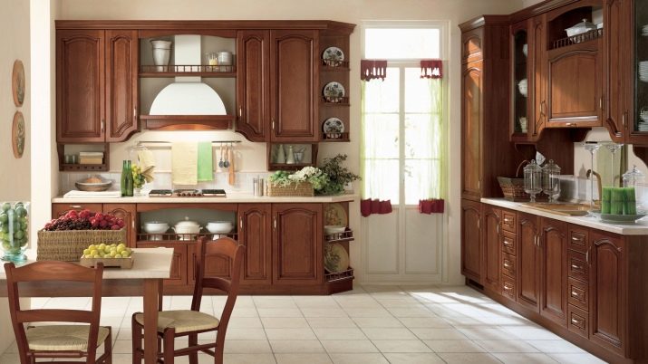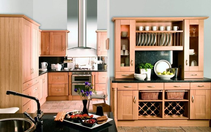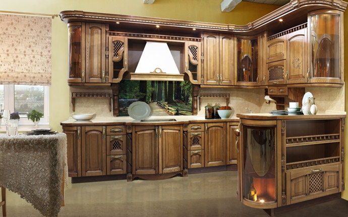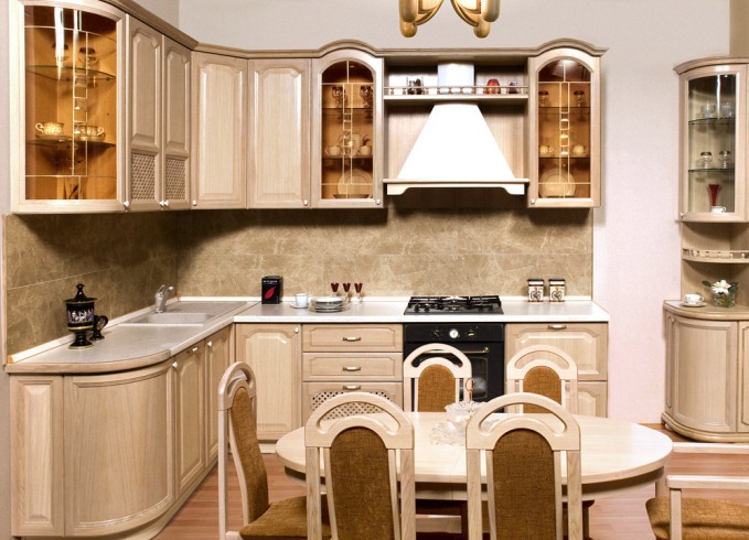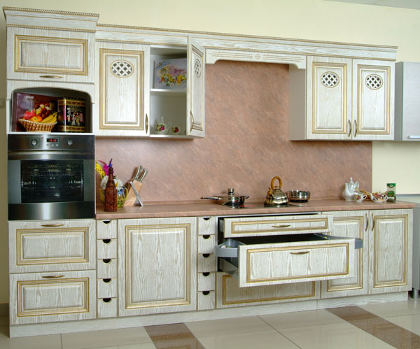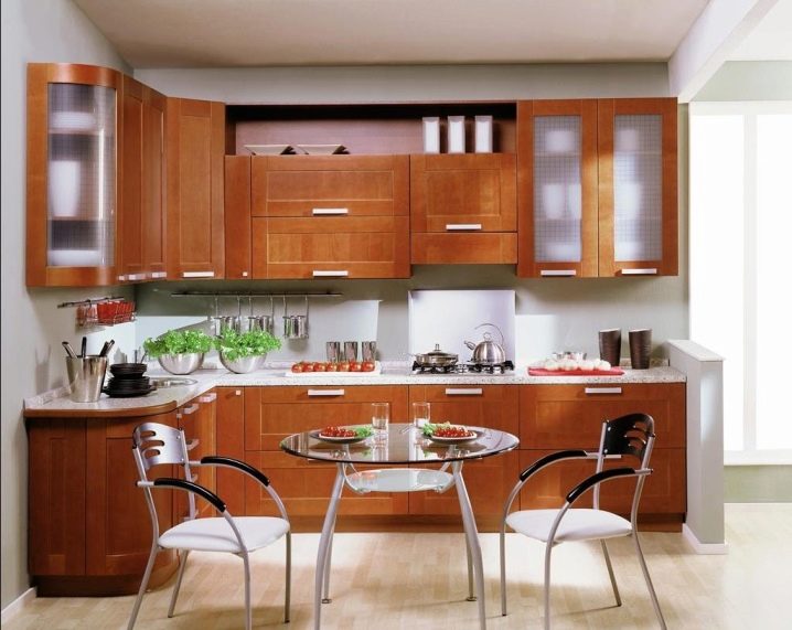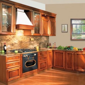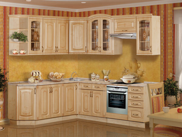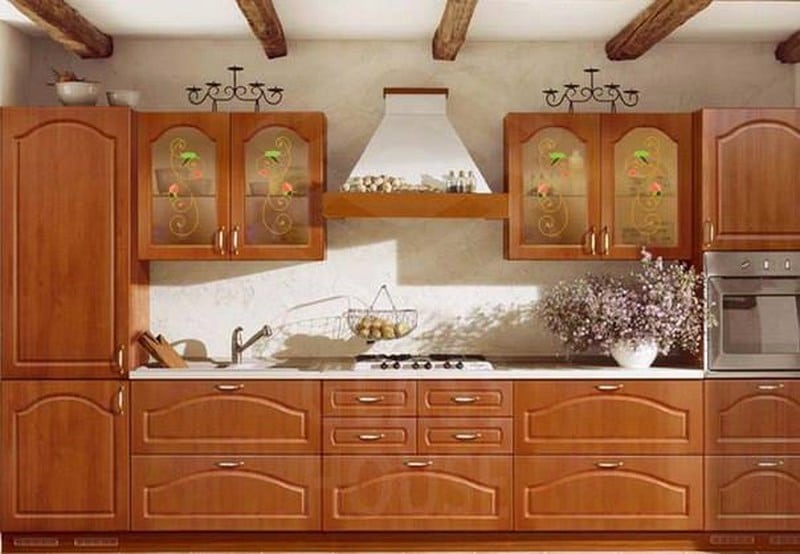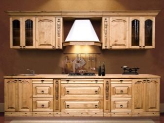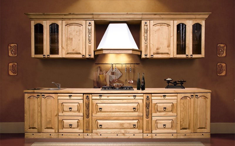 - Das beste Material für die Herstellung von Wandschränken in der Küche ist Holz - biegsam in der Arbeit Kiefer, anti-bakterizide Buche, elegante Kirsche, gemütliche Nussbaum, eigenartige Kastanie und langlebige Eiche. Die "Anyuta" -Küchengarnituren, die zum Beispiel von den Kiefern hergestellt wurden, sind bei den Herstellern und Käufern beliebt, und neben den typischen sind die Abmessungen nicht standardisiert, so dass die Nutzfläche des Küchenraums effizient genutzt werden kann.