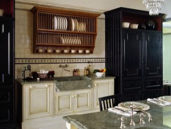 Die Trocknung für Geschirr kann jedoch in einem günstigeren Licht angezeigt werden - ursprünglich eingebettet in den Raum eines Wandküchenschranks und für größeren Komfort, Befestigung neben der Spüle.Aber bei einer solchen Konstruktion ist es nicht mehr notwendig, das Trockenfach zu schließen - es ist schneller und einfacher, das nasse Geschirr auf seine Teile zu verteilen, wenn das Gehäuse keine Türen hat.