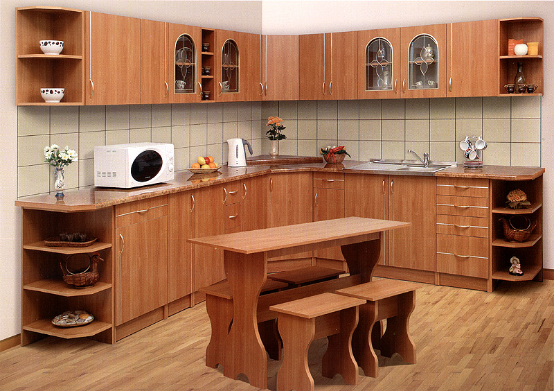 Daher bieten Hersteller Küchenschränke aus billigeren und weniger kapriziösen Materialien an - aus MDF, Kunststoff und Spanplatten: