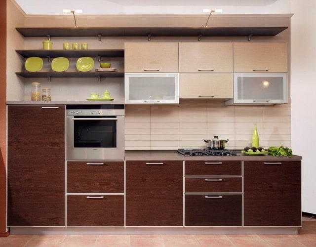 Abgehängte Küchenschränke aus Naturholz sehen in jedem Design luxuriös aus und dienen mehr als einer Generation ihrer Besitzer. Aber nicht jeder Koch kann es sich leisten, sie mit der Küche auszustatten. Darüber hinaus bleiben Holzschränke auch nach einer speziellen Behandlung äußerst anfällig für die aktive Umgebung des Küchenraums.