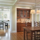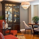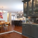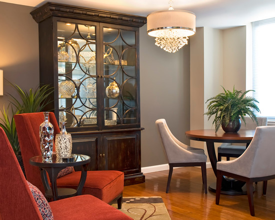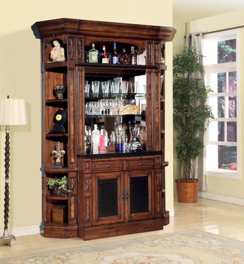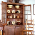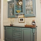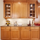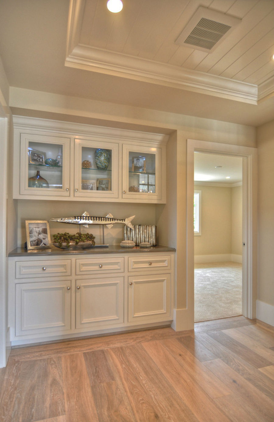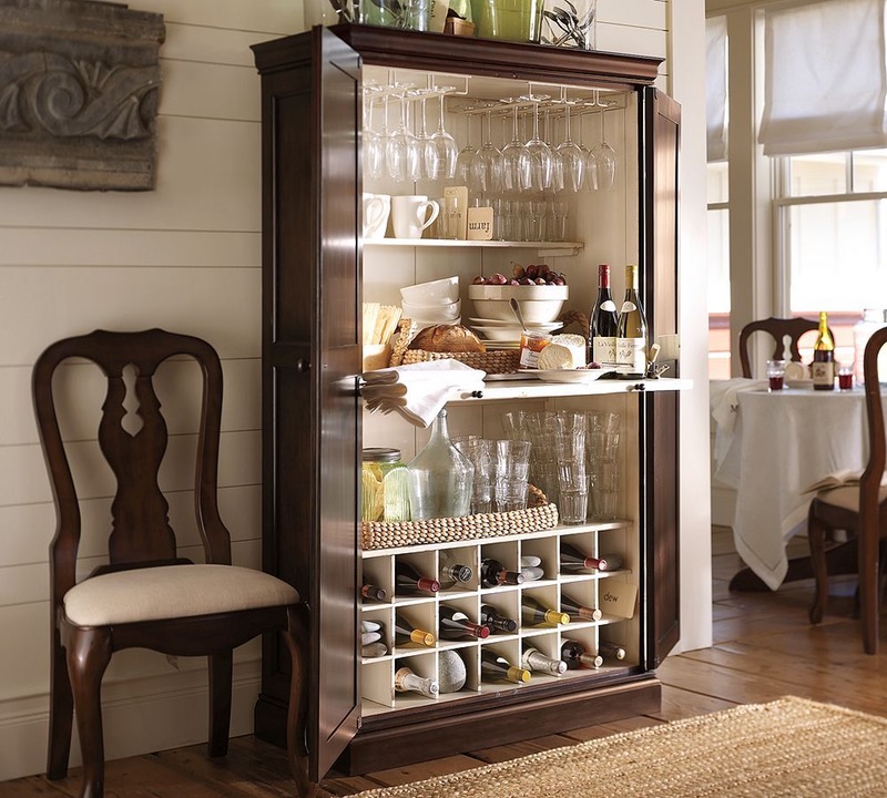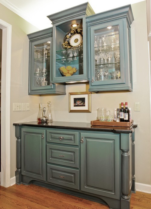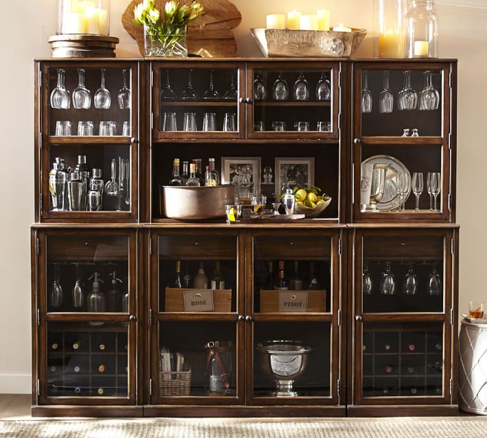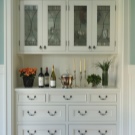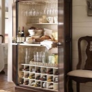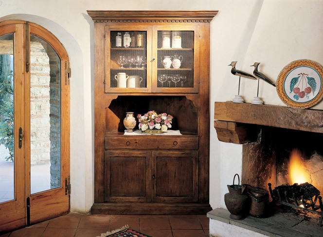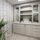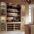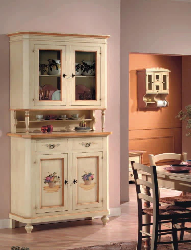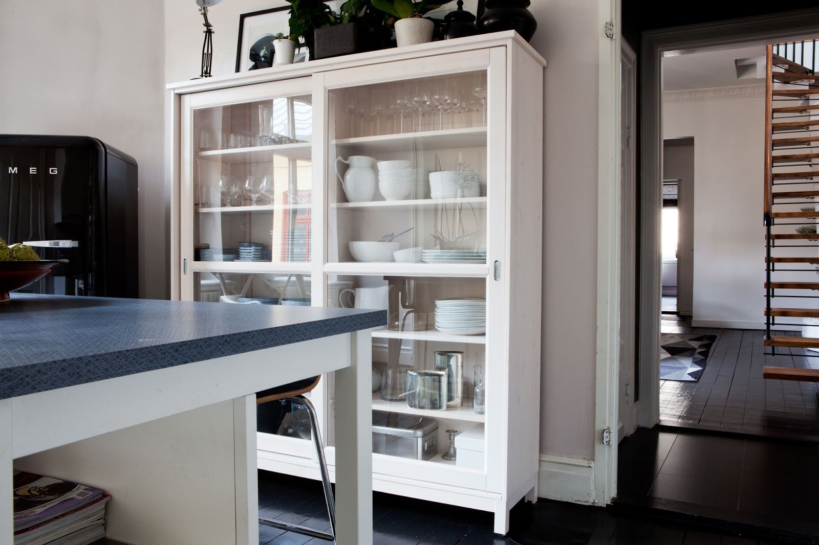 Dies ist ein Bodenschrank mit transparenten Glastüren. Solch ein Schrank sollte am sichtbarsten Platz sein. Er fragt in der geräumigen Küche oder im Gäste-Esszimmer. Es kann sowohl hoch als auch klein sein.