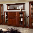 Diese Garderobe ist eine ausgezeichnete Wahl für Liebhaber exquisiter Dinner-Sets und Souvenirs. Durch die Glastür werden schicke Gerichte eröffnet. Im Schrank befindet sich ein Barbereich für schöne Flaschen alkoholischer Getränke. Türen schützen vor Staub. Und wenn die Vitrine geöffnet ist, kann sie immer noch als Buffet bezeichnet werden.
