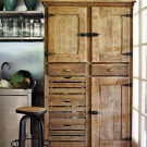 Hoher und schmaler Schrank in Form einer Säule kommt an die Decke. Äußerlich scheint es, als ob es klein ist, aber in der Tat ist ein solches Kabinett ziemlich geräumig. Es bietet Platz für einen Backofen, eine Kaffeemaschine und einen Toaster. Oder baue einen Kühlschrank. Zur gleichen Zeit verstecken sich Haushaltsgeräte geschickt hinter den Türen. Oder so - oben und unten in den Fächern für Geschirr, und in der Mitte zum Beispiel eine Mikrowelle zu bauen.