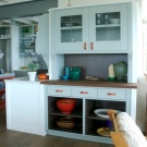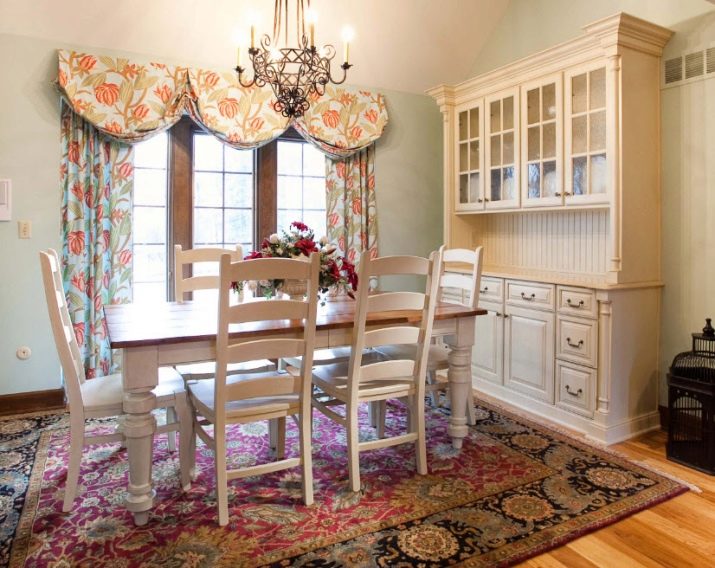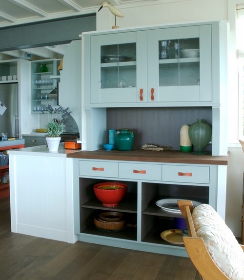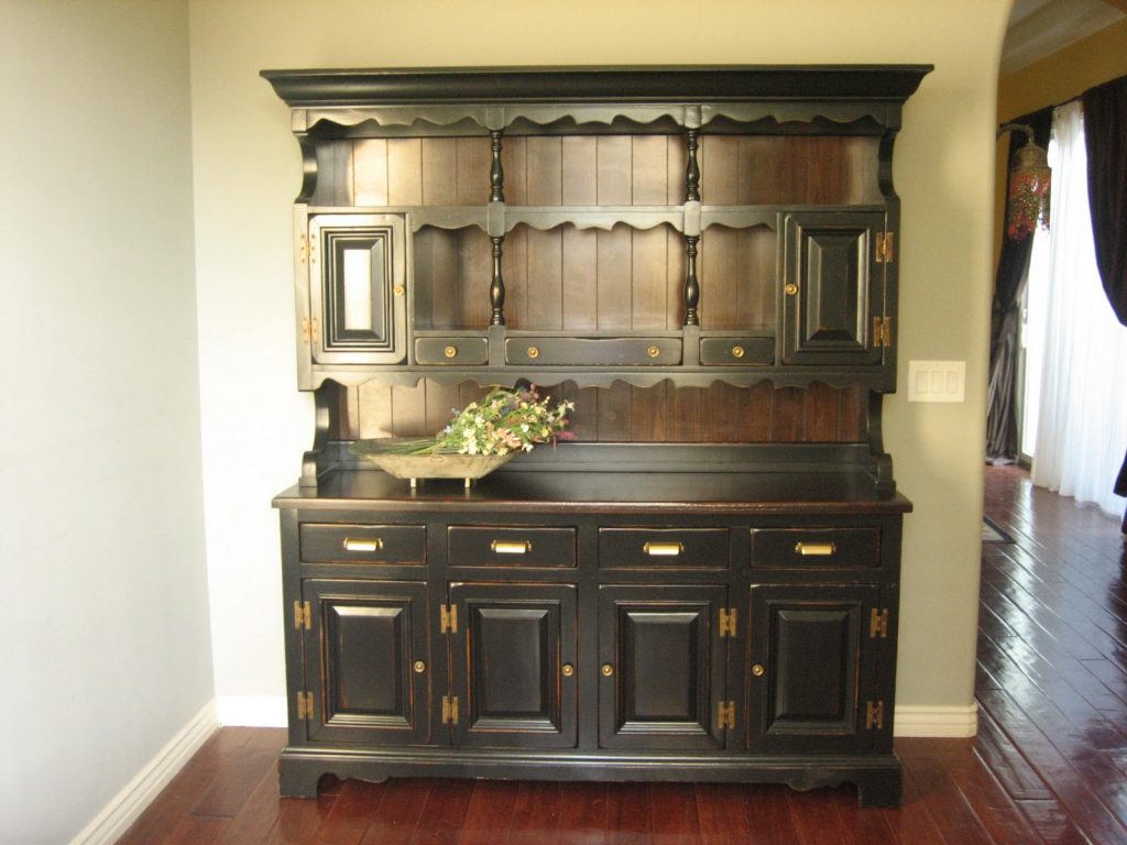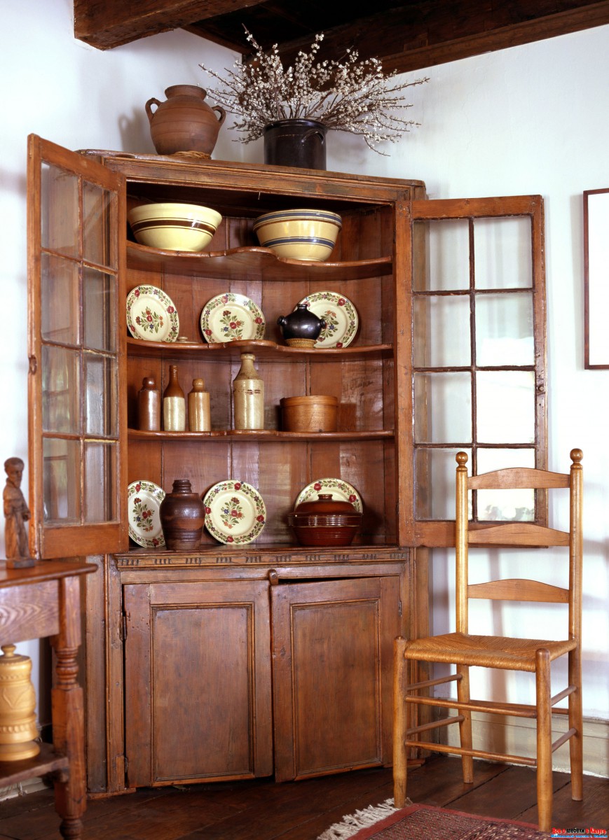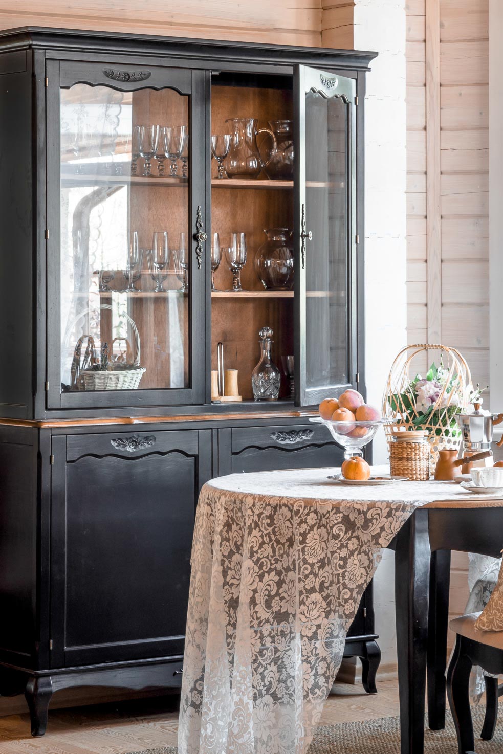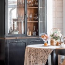 Es kommt vor, dass die Vitrine im oberen Teil komplett offen ist. Oder hat die Tür nicht auch den unteren Teil. Es eignet sich für große Krüge, Geschirr, Geschirr.Darüber hinaus kann das Buffet eine Arbeitsfläche haben, auf der die Gastgeberin Essen zubereiten wird.
