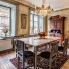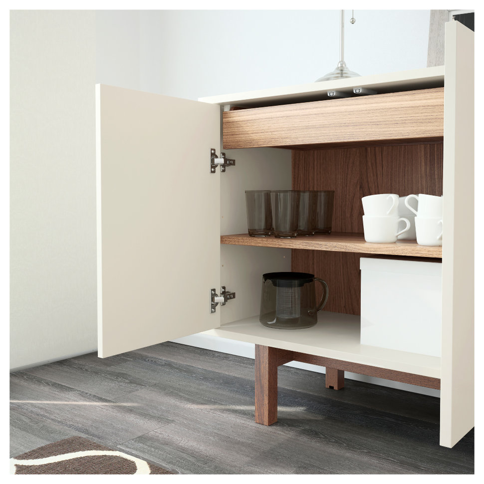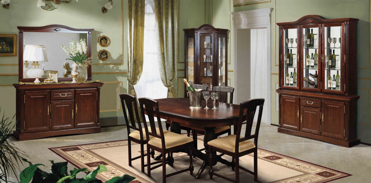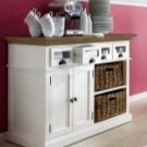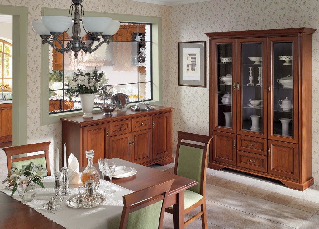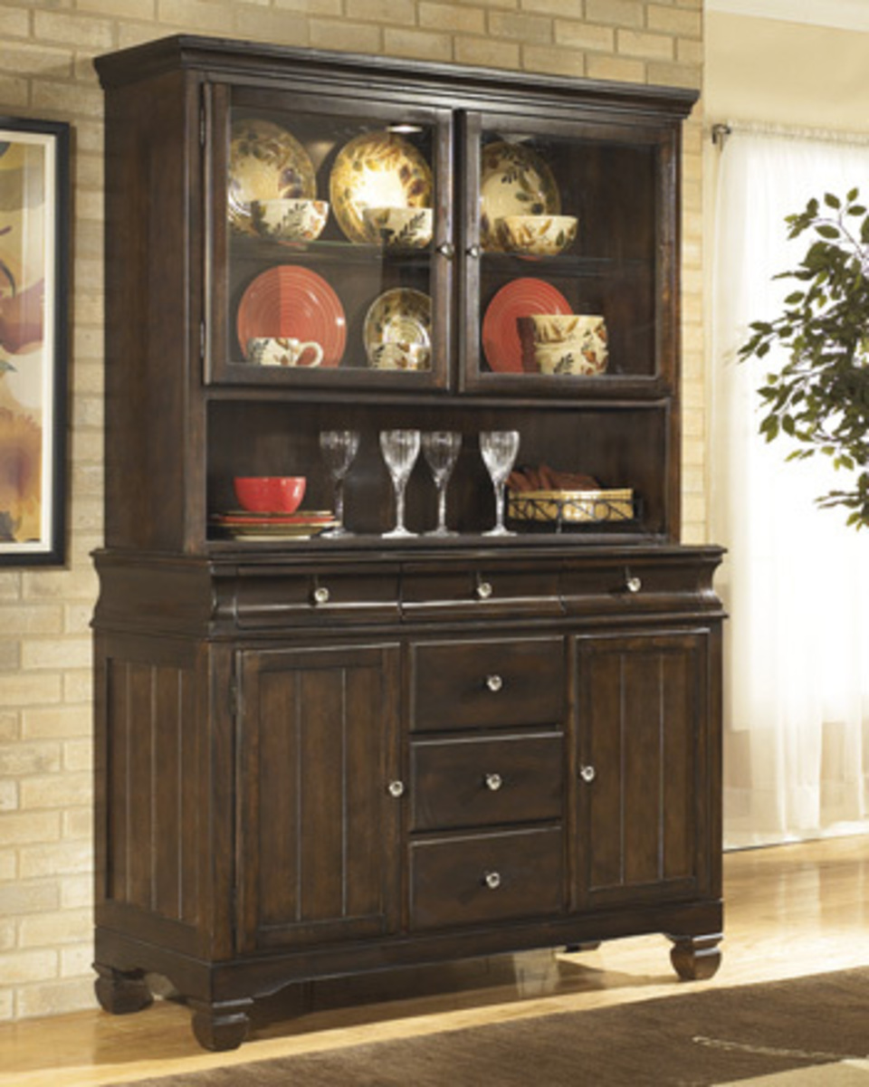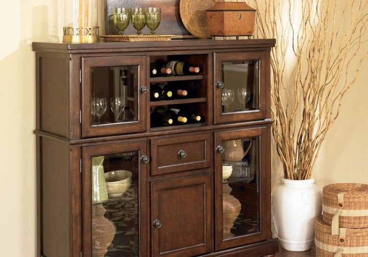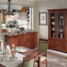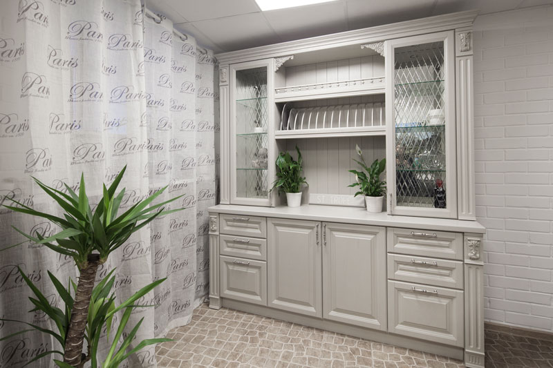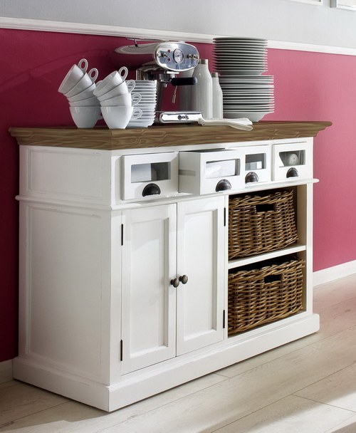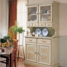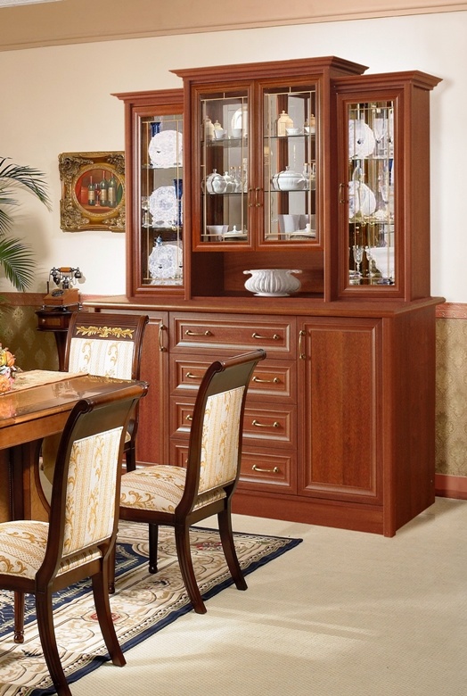 Das Buffet ist eine besondere Küche für Geschirr. Auf diesem Schrank befindet sich ein Sideboard mit transparenten Türfenstern. Normalerweise gibt es schöne Gerichte. Unten - ein Standardschrank mit Regalen und geschlossenen Türen ist für alle Küchenutensilien konzipiert.