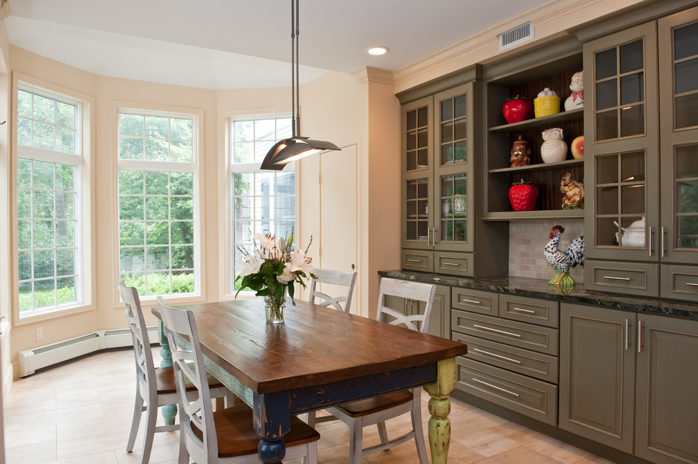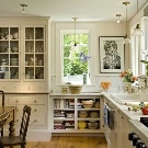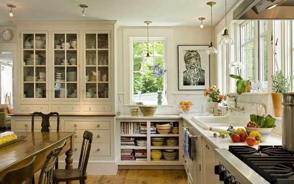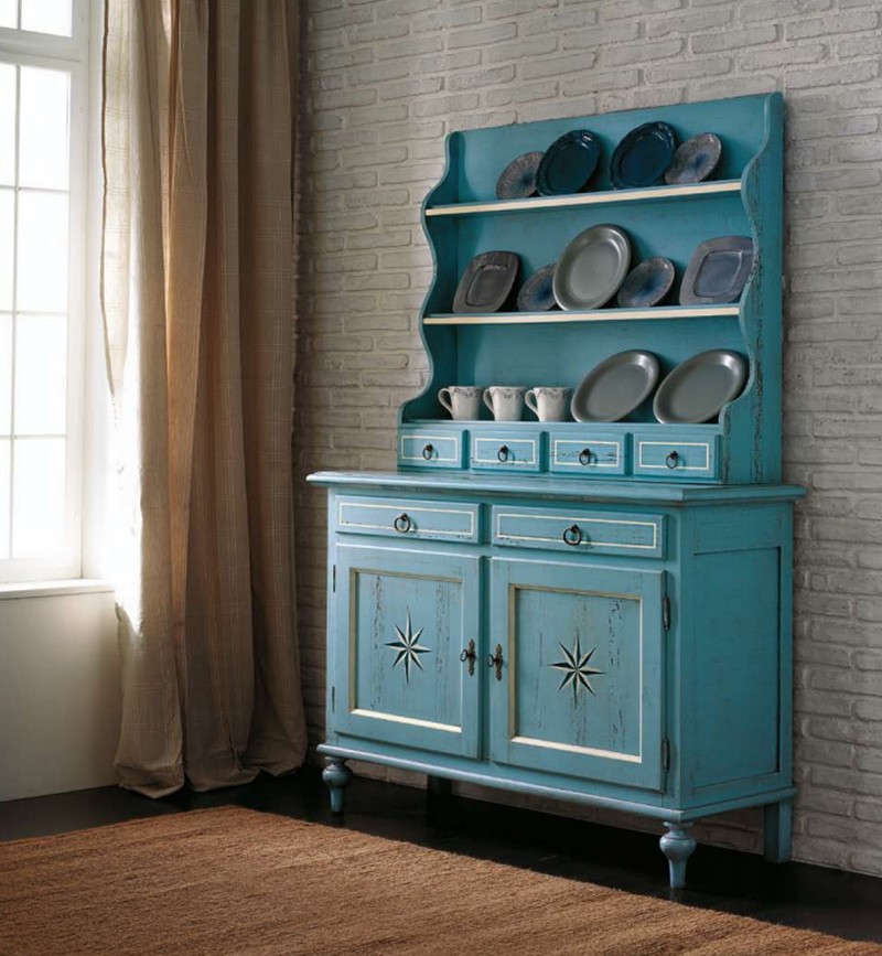 Das Buffet hat oft viele offene Regale. Sie können sie dekorieren, indem Sie eine Vase mit Blumen, einen Obstteller, bemalte Teller, geschnitzte Figuren, Fotorahmen oder raffinierte Souvenirs aufstellen. Diese süßen kleinen Dinge machen die Küche gemütlich.