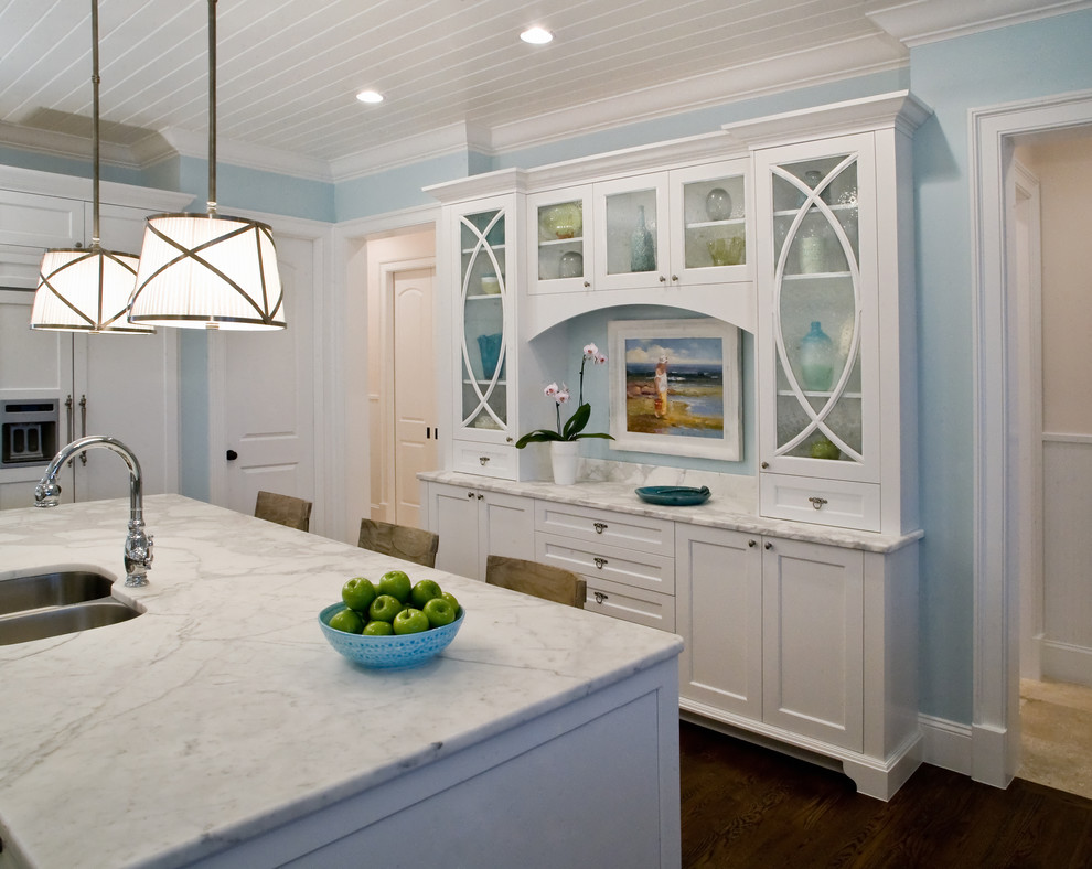- Es lohnt sich, über die Farbe des Schrankes nachzudenken. Zum Beispiel ist das Gehäuse hell, in warmen Farben wird der Appetit wecken. Kalte Töne dagegen fördern Zurückhaltung. Sanfte Bettschattierungen erhöhen die Küche optisch.Fügen Sie ein Gefühl von Geräumigkeit und Glastüren hinzu. Eine eingebaute Schrankbeleuchtung gibt ein Gefühl der Ruhe.