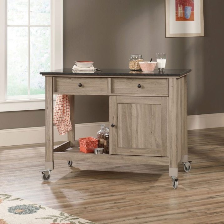 Ein kleiner Kleiderschrank ist auch ein Tisch. An der Unterseite können Sie es als normalen Schrank mit Regalen verwenden und oben eine Tischplatte installieren. In so einem Schrank ist echt und Essen zu kochen. Diese Option ist das Beste für Besitzer kleiner Küchen. Es wird unersetzlich sein, auch wenn es häufig umzieht. Bei Sommerhäusern und Sommerküchen ist es einfach notwendig.