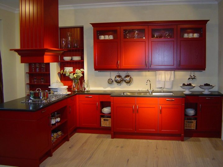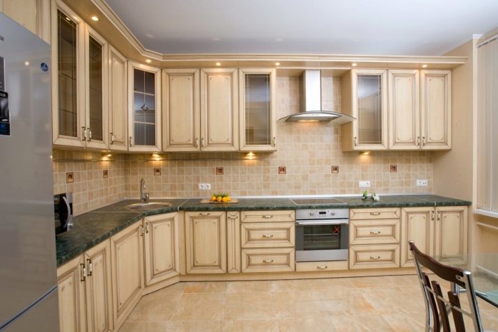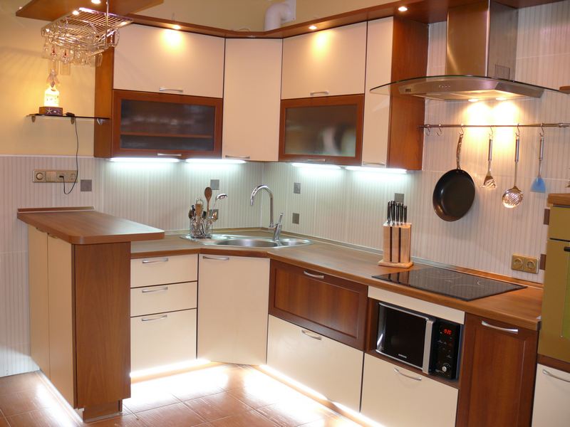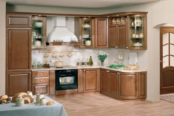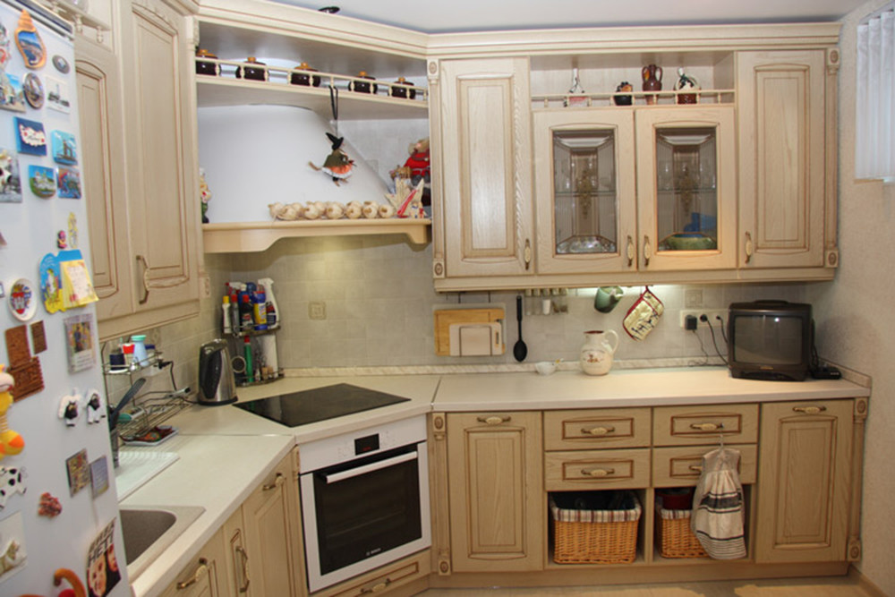 Küchen-Eckschrank ist eine der optimalsten Möblierungsmöglichkeiten in solchen Räumen, da fast alle verfügbaren Plätze genutzt werden können. Solche Designs sind sowohl für geräumige Küchen geeignet, als auch sehr klein.