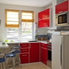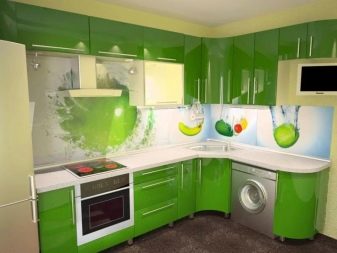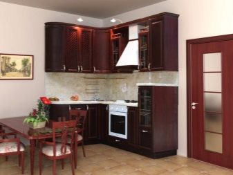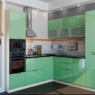 - Eckstrukturen erlauben uns, eine Ecke in der "Arbeit" der Küche zu verwenden - eine Zone, die einerseits nutzlos ist, und andererseits ein sehr kleines Quadrat, das für die Küche sehr wichtig ist.Traditionell versuchen Designer im Maßstab einer kleinen Küche, jeden Zentimeter freien Platz weise zu gebrauchen, Ecken zu benutzen ist in diesem Fall eine äußerst richtige Entscheidung.