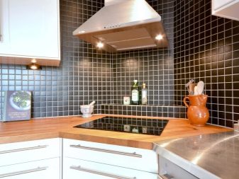 - Es ist möglich, ein Kochfeld im Eckraum des Moduls zu installieren; Diese Methode eignet sich für Großküchen, da die Platzierung nicht ganz rationell ist und viele Küchenräume "stiehlt".