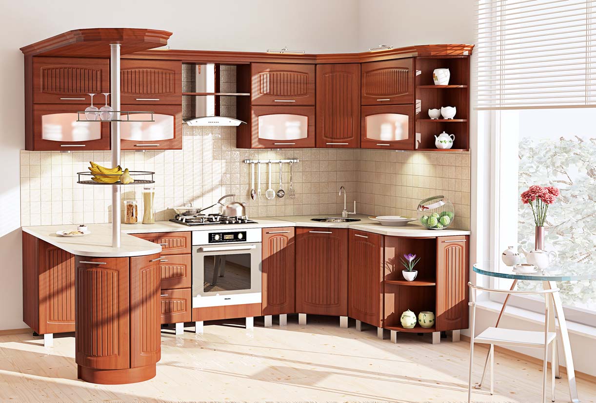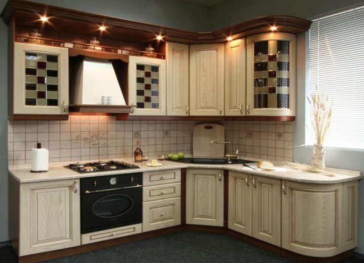 Küchenplanung erfordert sorgfältige Beratung und Beratung von erfahrenen Fachleuten; Ersparen Sie sich die Kreation eines individuellen Designprojekts der zukünftigen Küche, um die maximale Funktionalität zu gewährleisten. Eckstrukturen von Boden- und Wandschränken erlauben Ihnen, die Küche zu benutzen und zu benutzen, was die Gastgeberin zweifellos schätzen wird.