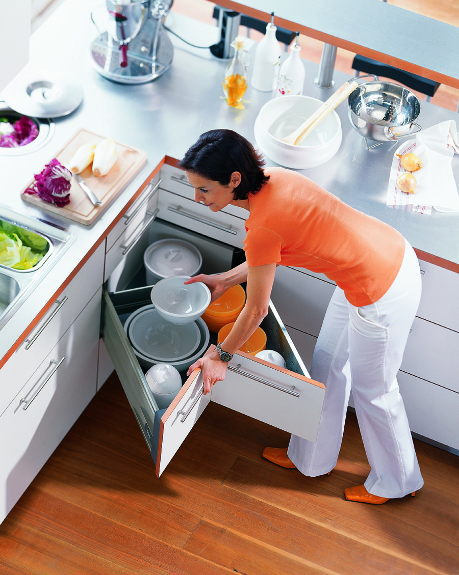 - Das Design des Eckschranks (egal ob unten oder oben) ist so durchdacht, dass Sie jedes Modul mit einer einfachen Handbewegung öffnen können.