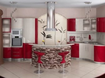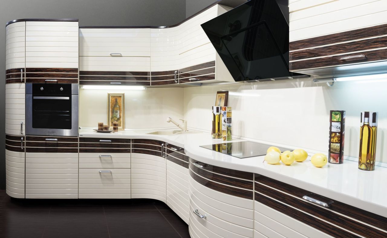 Es ist sehr wichtig, dass die Ausrüstung ergonomisch richtig platziert wird. Alle Geräte müssen so positioniert werden, dass Sie die Türen problemlos öffnen können. Der Herd oder das Kochfeld sollte mit Modulen mit Arbeitsflächen versehen sein, so dass die Gastgeberin während des Kochens nicht viele unnötige Bewegungen ausführen muss. Es ist besser, den Kühlschrank vom Herd weg und näher zum Esstisch zu stellen. Der Bereich zum Abwaschen von Geschirr, Gemüse und Obst sollte nicht direkt neben dem Ofen stehen.