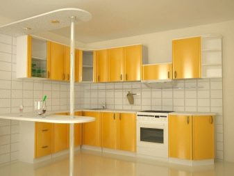 Wenn in einer kleinen Küche ist es erforderlich, sowohl Möbel als auch notwendige Ausrüstung in einem kleinen Bereich zu platzieren,in der Regel wird eine kleine Platte mit einer Standardbreite von 50 cm installiert, und kleine Bodenschränke mit einer schmaleren Arbeitsplatte.