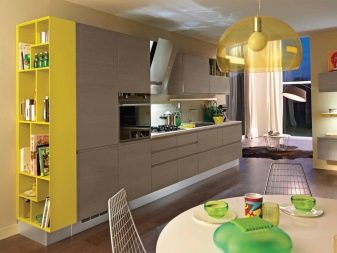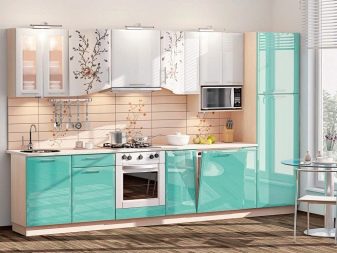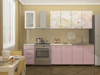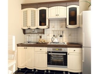 Der hängende Schließfächer soll eine Menge Regale, auf denen zu stellen, die verschiedene Gerichte, kleine Haushaltsgeräte, Gläser von Schüttgut. Im oberen Modul oberhalb der Spüle ist es bequem, die Trockner für Geschirr zu platzieren.