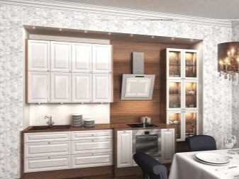 An den Wänden im oberen Raum sind Hängeschränke angebracht. Sie werden verwendet, um leichtere Küchenutensilien, Glaswaren zu lagern. Oft werden die Türen und Regale in den Wandschränken aus transparenten Materialien hergestellt, die die Küche schmücken, ihr ein elegantes Aussehen geben und die Stimmung verbessern. Oberschränke sollten mit maximaler Zuverlässigkeit an den Wänden befestigt werden.