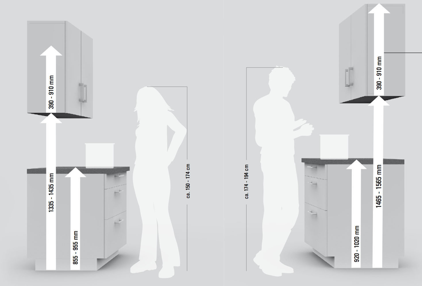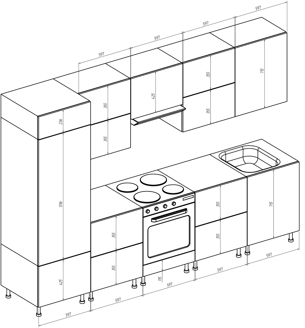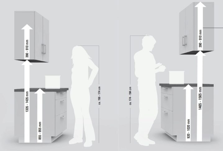 Es gibt keinen staatlichen Standard für die Herstellung von Küchenmöbeln. Typische Abmessungen für den oberen und unteren Schrank sind jedoch immer noch vorhanden. Die Hersteller orientieren sich in der Regel an den durchschnittlichen anthropometrischen Eigenschaften der Menschen in diesem Gebiet. Aber bei der Herstellung von Möbeln für die Küche auf Anfrage werden seine Abmessungen oft im Einklang mit dem Wachstum und dem Wunsch der Kunden bestimmt.