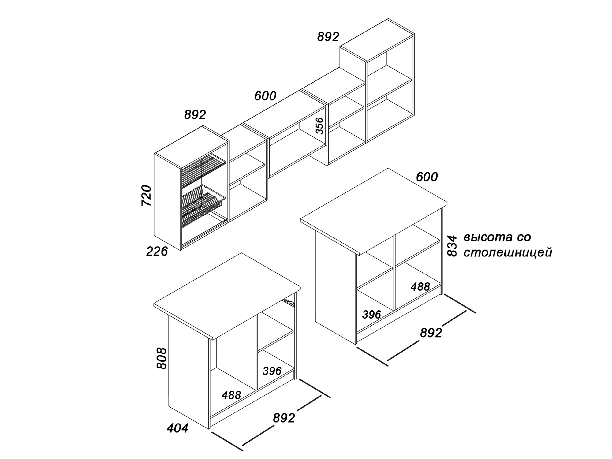 Die Standardhöhe der Schränke beträgt in der Regel 85 cm, die Breite der Tischplatte beträgt in der Regel 60 cm, die Türen sind auf eine Breite von nicht mehr als 50 cm begrenzt.