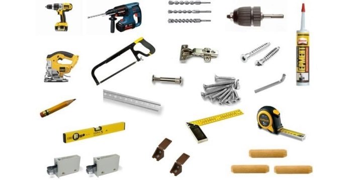 Heute, wenn Sie es wünschen, können Sie alle Materialien und Zubehör für die Eigenproduktion von Möbeln in den Läden kaufen. Werkzeuge wie Bohrer, Schraubenzieher, Stichsäge, Handsäge, Hammer, Level werden benötigt. In der Regel ist ein solches Werkzeug bereits in fast jedem Haushalt verfügbar.