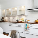 Glas ist ein wunderbares Material, das der Küche einen besonderen, interessanten Look verleiht. Es ist auch wichtig, dass die Glasfassade praktisch, vielseitig ist, gut aussieht, da sie ein mehrfarbiges Dekor haben kann.
