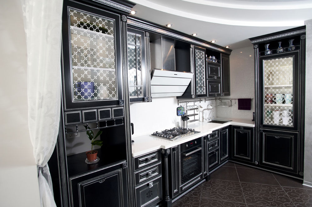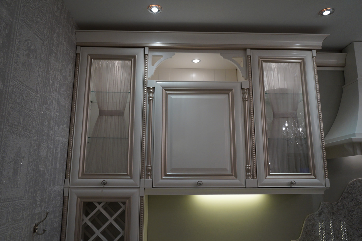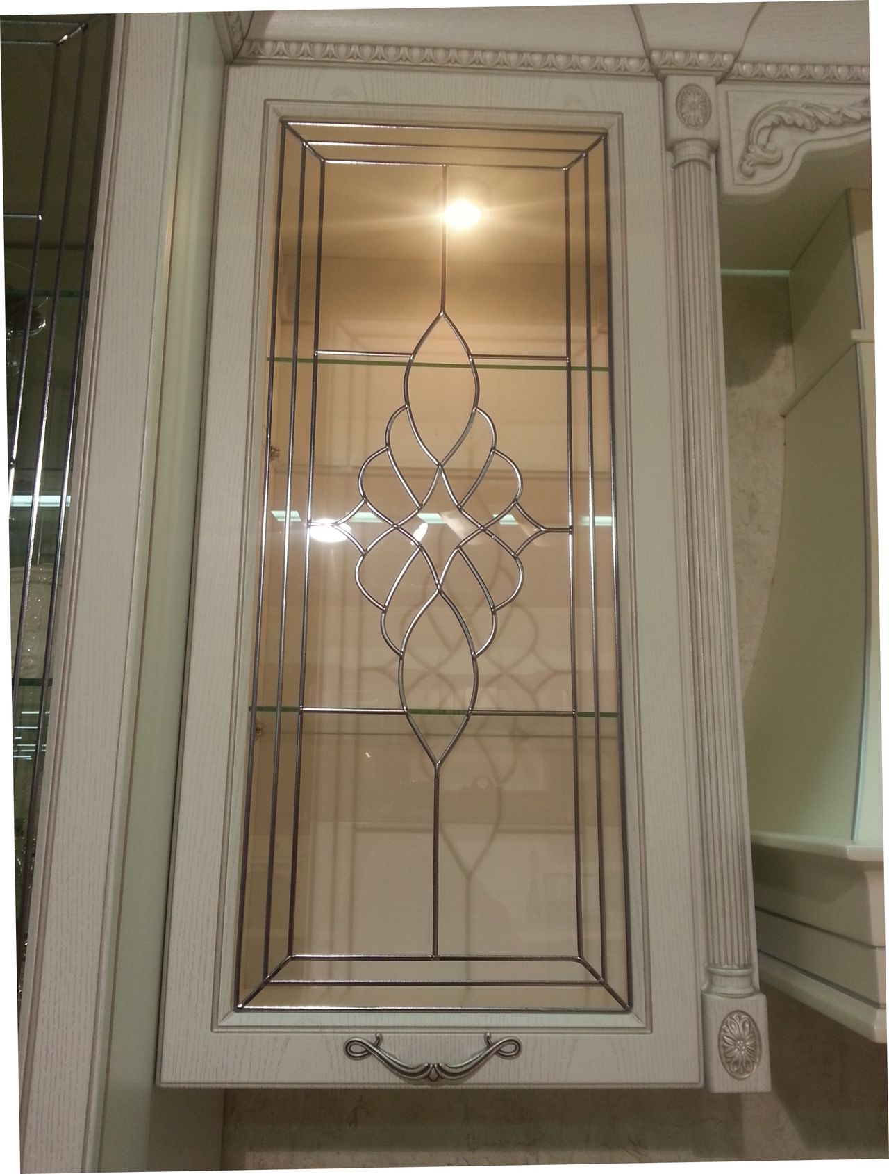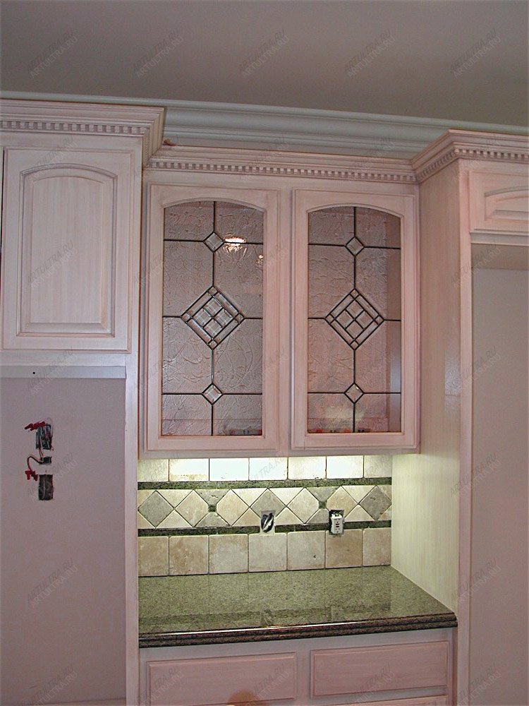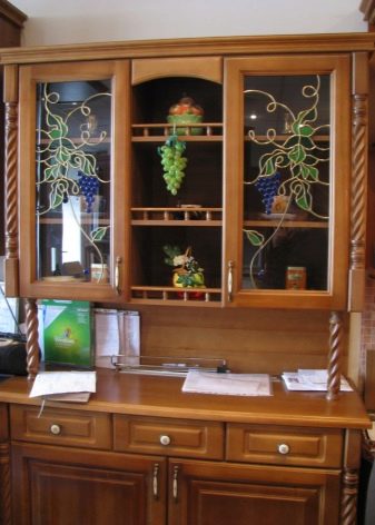 Sie können einen Küchenschrank mit Glas für Geschirr und sich selbst machen, Glasschliff von den Meistern dieses Falles bestellen.