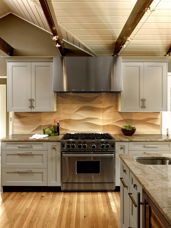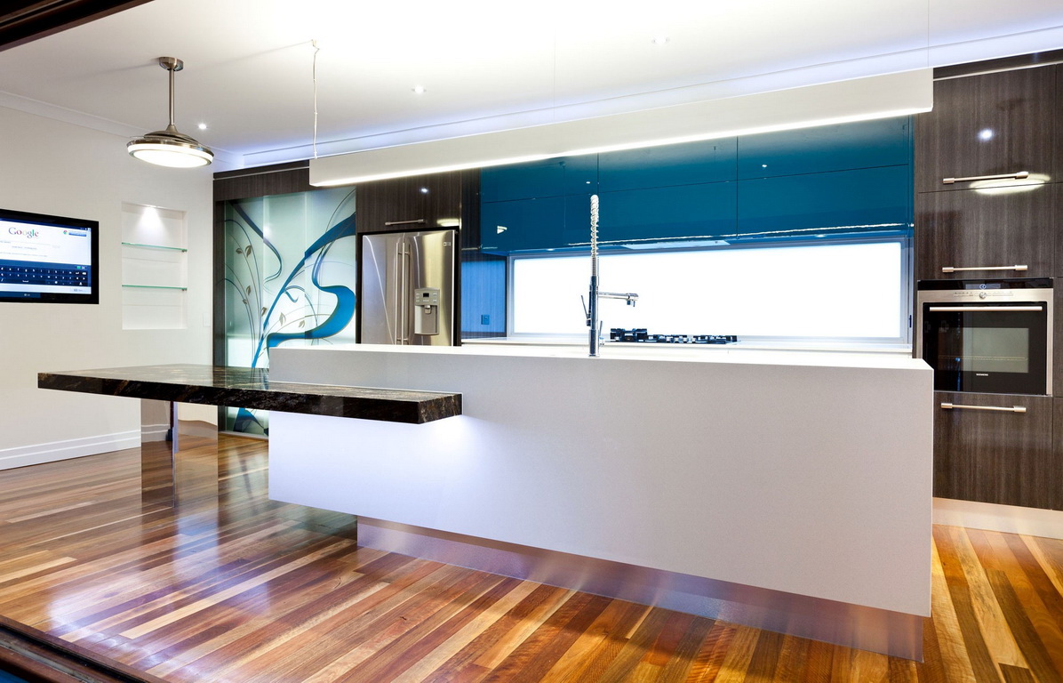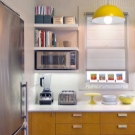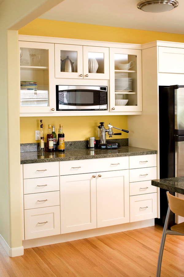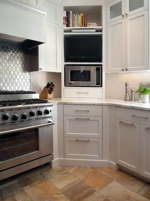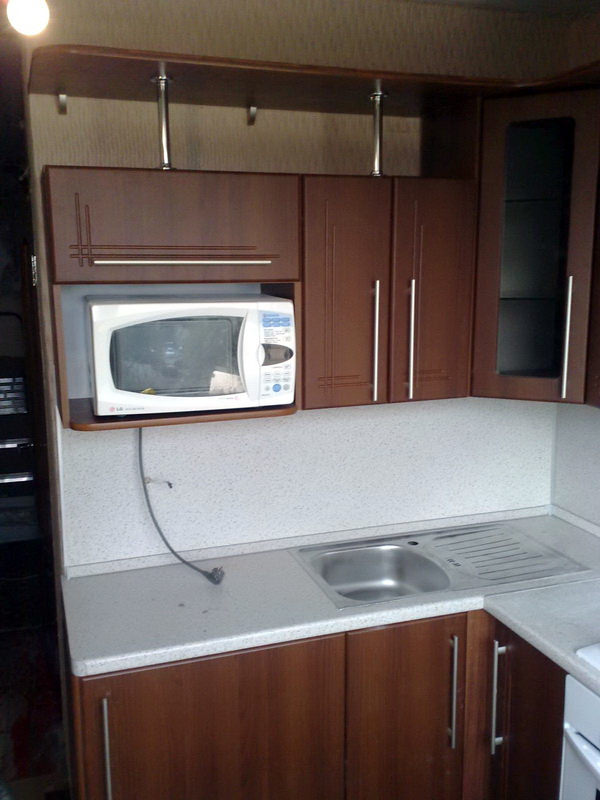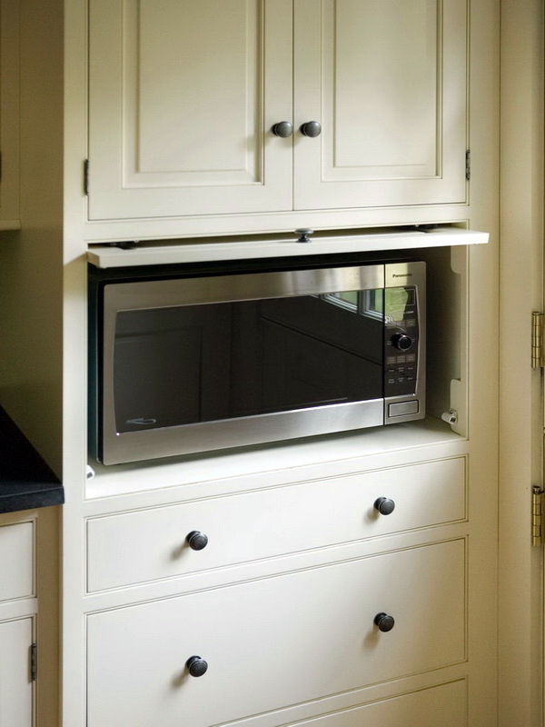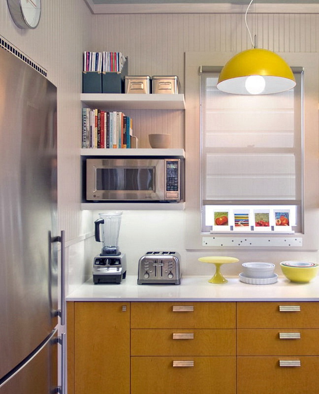 Die Mikrowelle hat keinen Einfluss auf die Gestaltung der Küche, aber nur, wenn Sie sich nicht dafür entscheiden, sie in den Küchenschrank zu integrieren (in der Regel einen Wandschrank). Auf der anderen Seite ist diese Option wirklich besser, weil dadurch die Mikrowelle Platz auf der Tischplatte freigibt (und nicht eine kleine). Noch besser, wenn die Mikrowelle nicht bauen muss, und einfach an die Wand hängen. Wählen Sie eine der Optionen, die Hauptsache ist, dass sich dieses Gerät in jedem Fall nicht vom Gesamtdesign abhebt und harmonisch mit ihm verschmilzt.