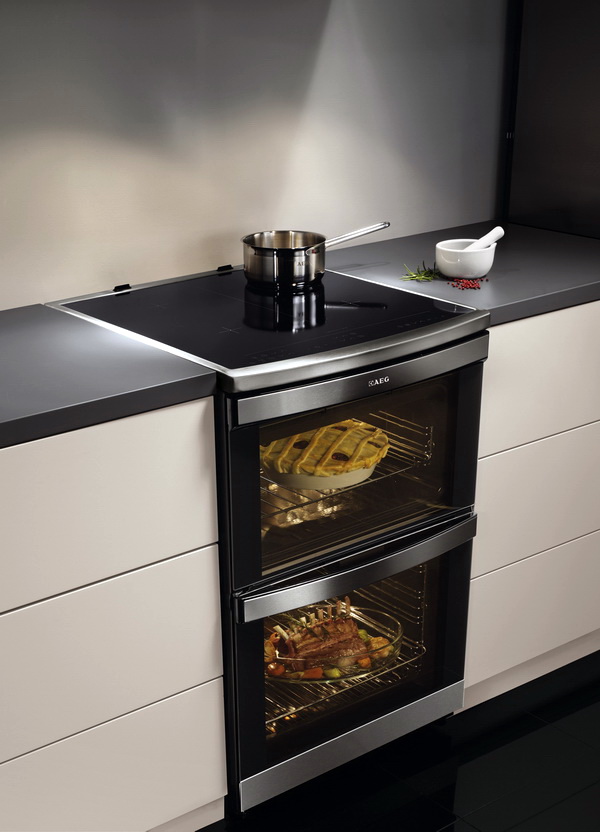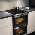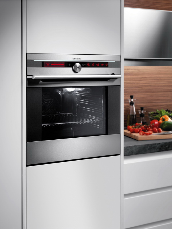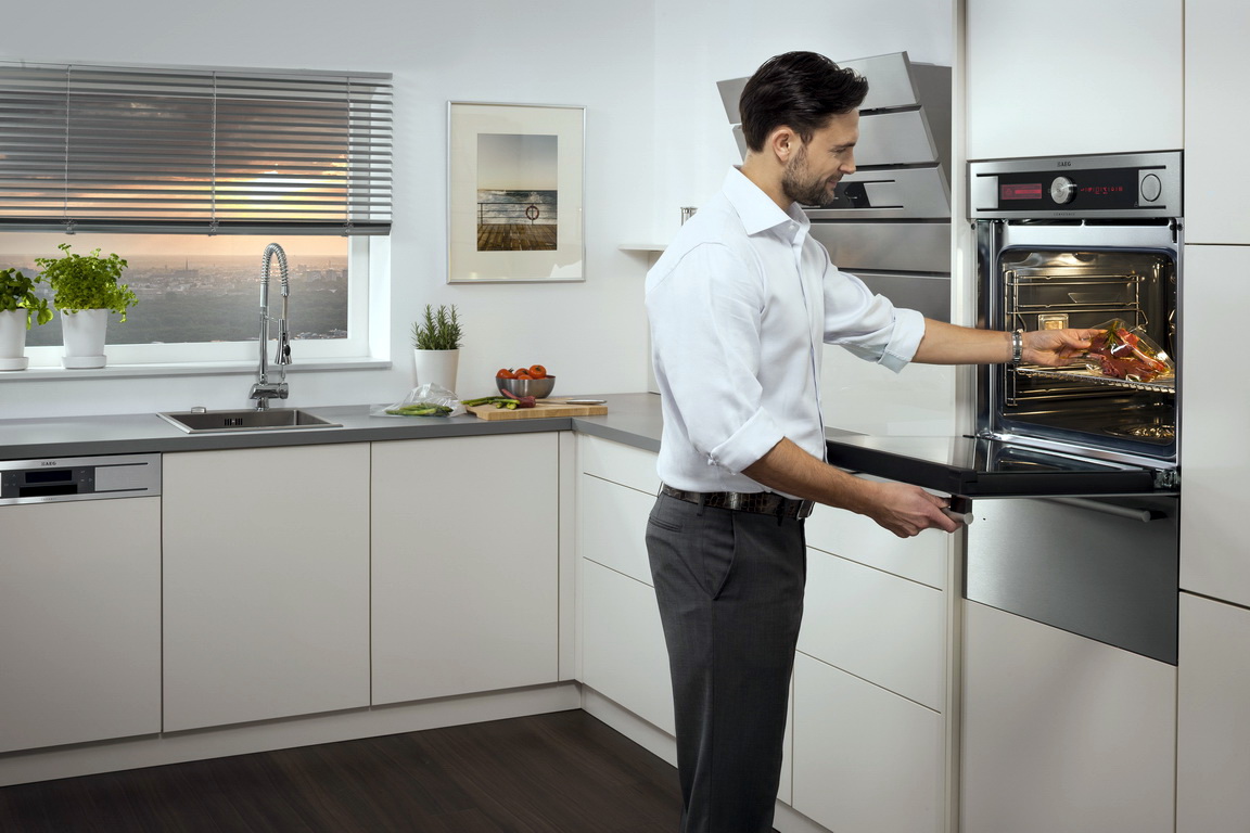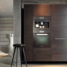 Die Module dieser Haushaltsgeräte sind zwischen Küchenschränken installiert und davor hängen sie eine Fassade.