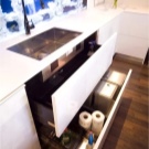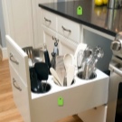 - in der Tiefe hat das Kabinett mindestens 46 cm (wenn die Schublade einziehbar ist, hat sie selbst eine Länge von 45 cm plus einen Zentimeter Reserve zwischen sich und der Rückwand des Moduls), aber Größen von 56 cm bis 58 cm gelten als die beliebtesten;