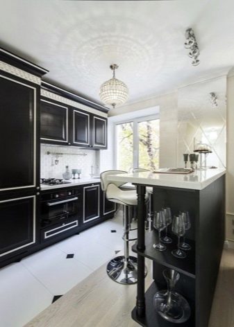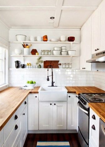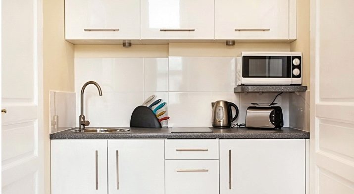 Ein Ausnahmefall sind die Mini-Küchen, in denen bei aller Lust Standardmöbel nicht eingeklemmt werden können. In solch einer Situation wird eine sechzig Zentimetern Arbeitsplatte noch getrimmt, aber vergessen Sie nicht, dass weder die Spüle noch die Kochfläche in die Mini-Küche gequetscht werden können, aber Sie können all dies in kleineren Parametern auf dem Möbelmarkt leicht kaufen.