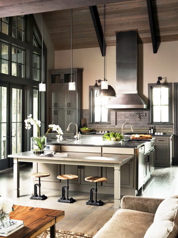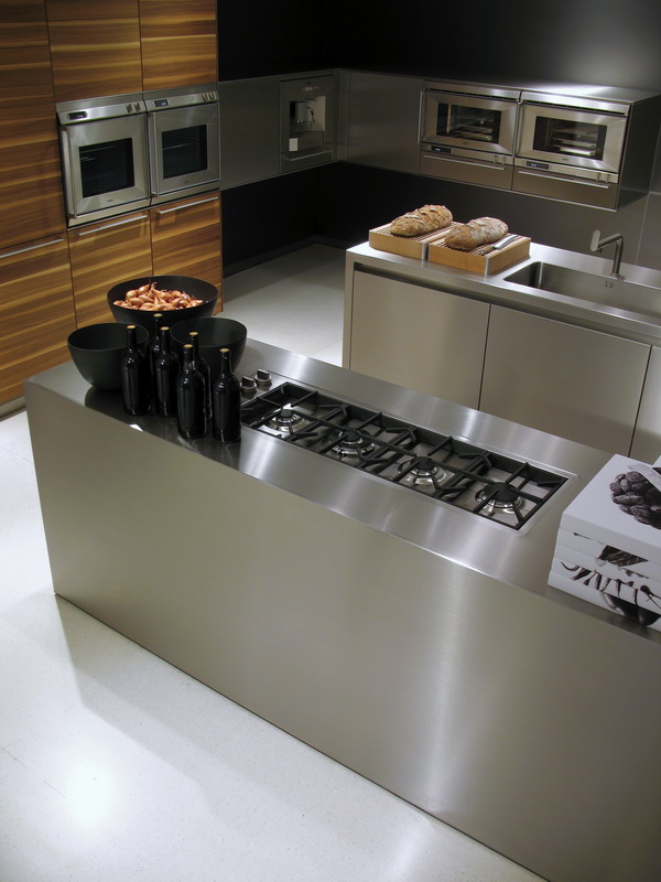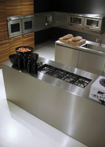 Diese Art von Arbeitsplatten ist empfohlen und weit verbreitet in einer großen professionellen Küche verwendet, kann es als Arbeitsplatte für die "Insel" in der Mitte einer ziemlich großen Küche oder einem Esstisch für eine große Familie dienen.Gleichzeitig ist es praktisch, eine Tischplatte dieser Größe nur dann zu verwenden, wenn der freie Zugang zu einem der Küchenschränke möglich ist.