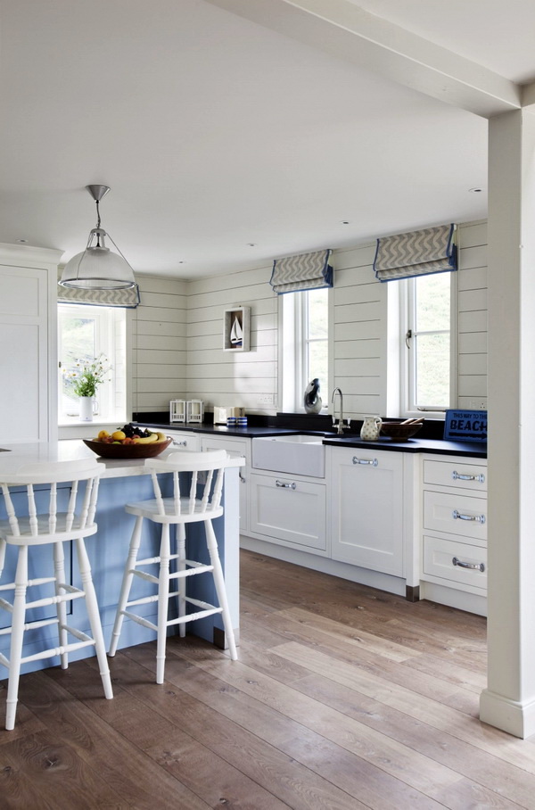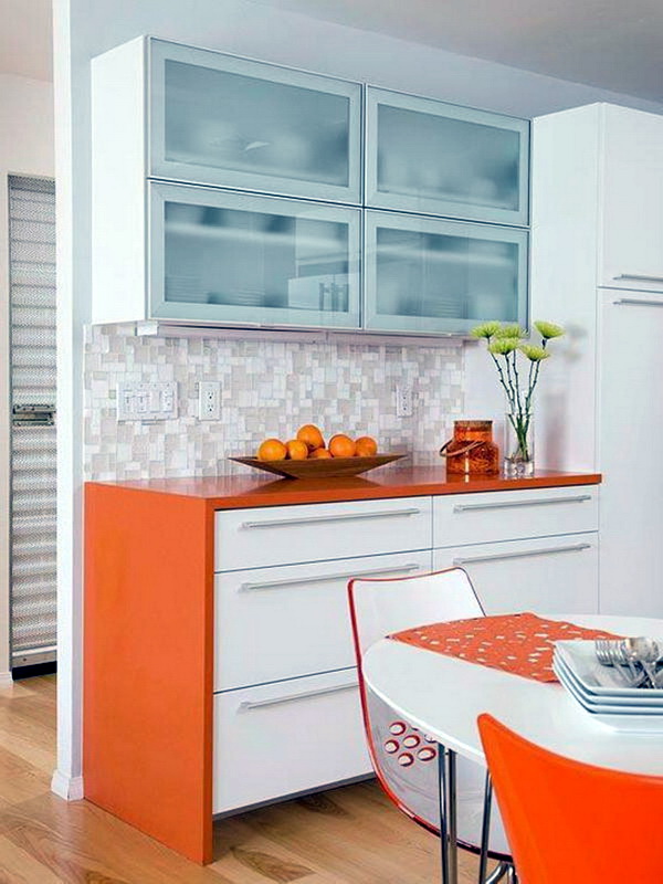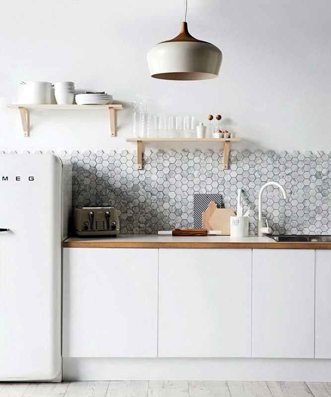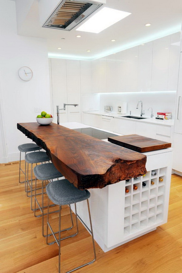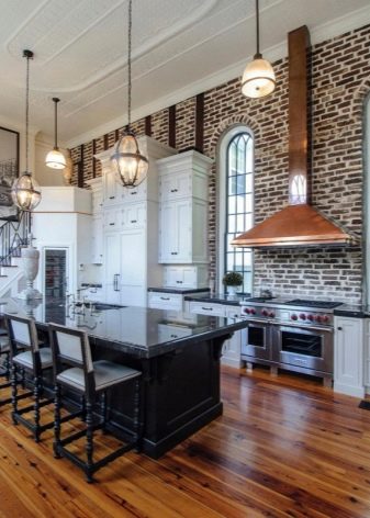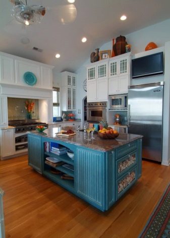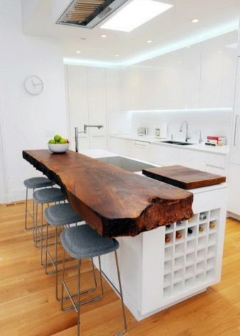 In diesem Fall müssen Sie versuchen, es nicht mit einer Änderung der Höhe zu übertreiben, sonst verliert die Küche ihre organische Natur.