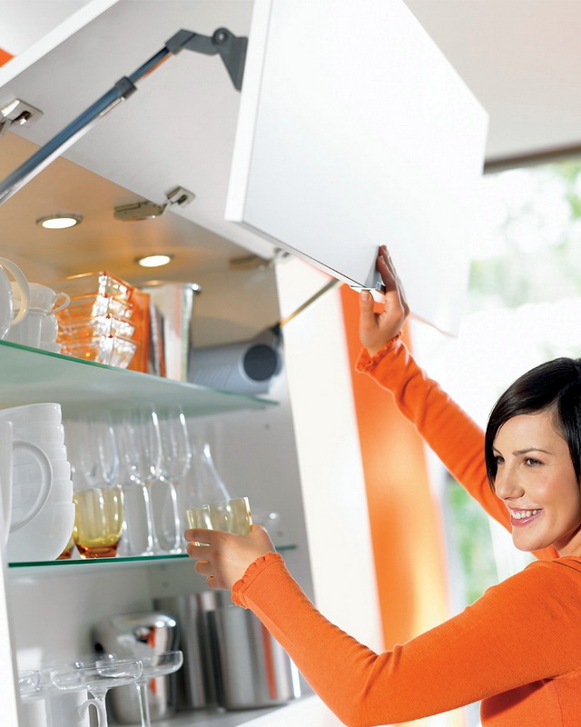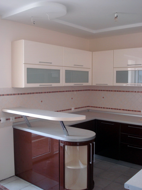 Die Verbindung zwischen den einzelnen Parametern ist sehr eng. Die Höhe der unteren Küchenmöbel kann durch spezielle Drehbeine eingestellt werden, und dies ist sehr wichtig, weil Hostessen sowohl kurz als auch groß sein können, und es sollte für jeden bequem sein.